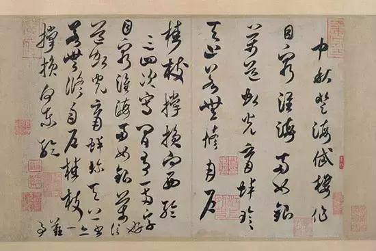 肯定有不少米芾粉丝关心偶像为中秋写了啥?米芾《中秋登海岱楼作诗帖》,即为《中秋诗帖》。纸本,草书,纵25.2厘米,横36厘米。米芾会玩,他在江苏担任涟水军使期间,最喜欢登临游览江苏涟水海岱楼。作为唐宋时代十分著名的望海楼,自古以来,诸多文人名仕登临赋诗的最佳旅游景点,唐代诗人杜甫诗赞:“浮云连海岱,平野入青徐”来形容它视野辽阔、宏伟壮丽的景观。作品如下: