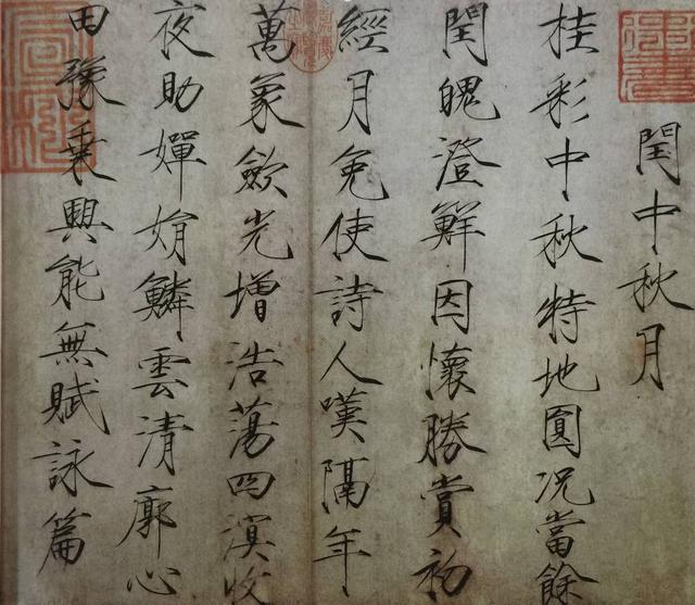 中秋美好佳节,书法皇帝宋徽宗当然要写字啊!赵佶以其刚柔并济的“瘦金体”写下《闰中秋月帖》(故宫博物院所藏),这件《闰中秋月诗帖》为“瘦金体 ”的典型作品之一,“瘦金”即有 “瘦筋”的含意。