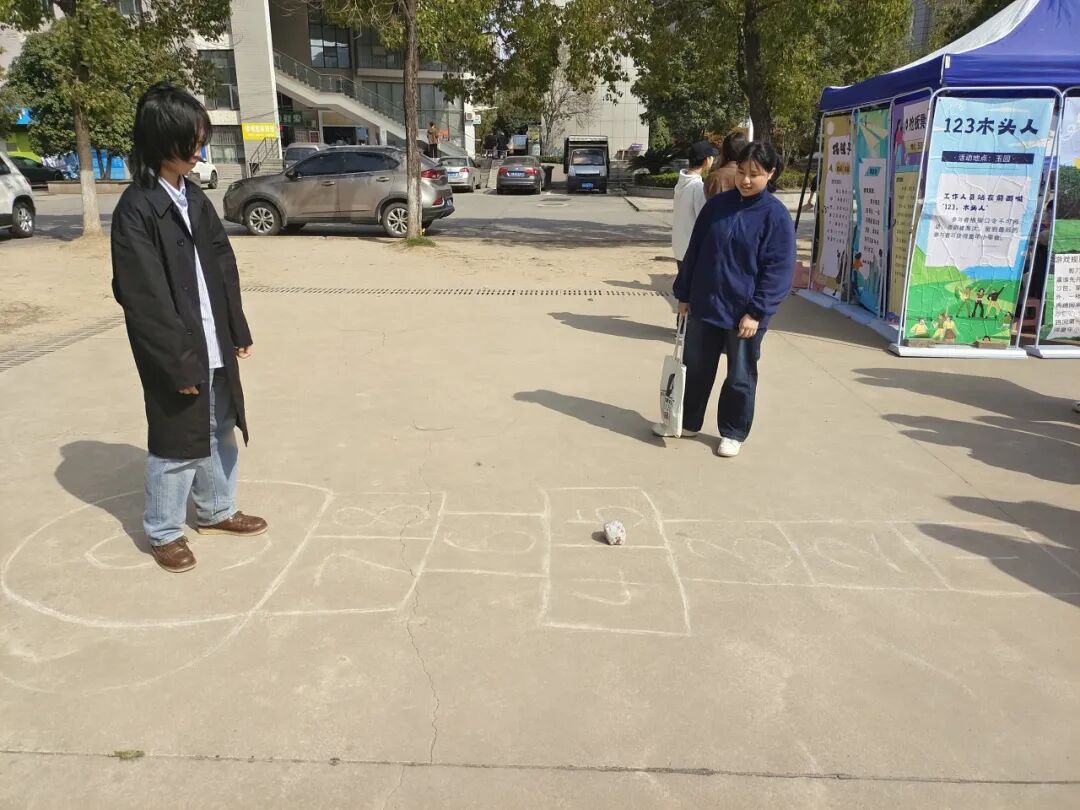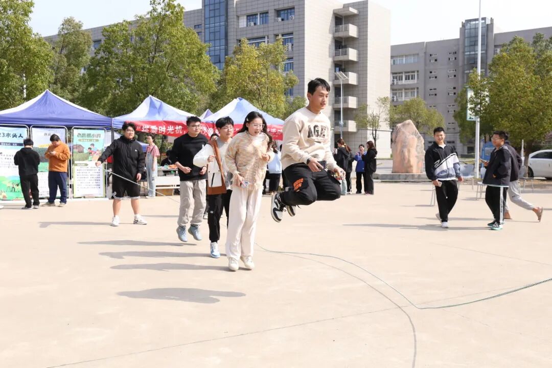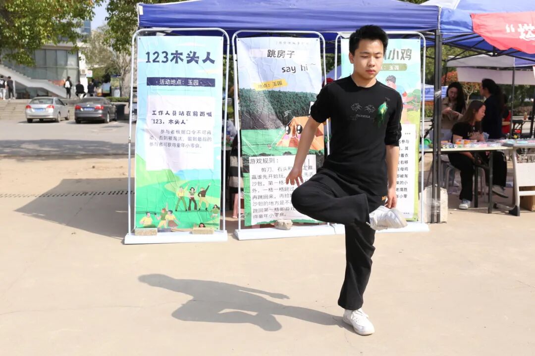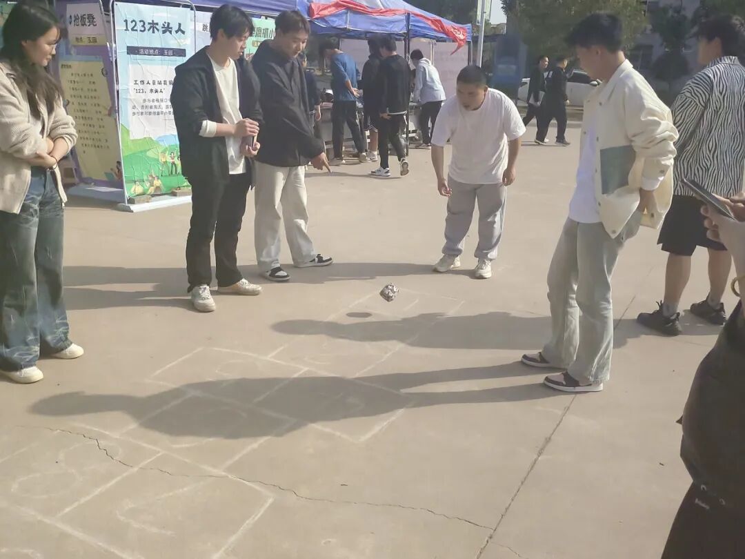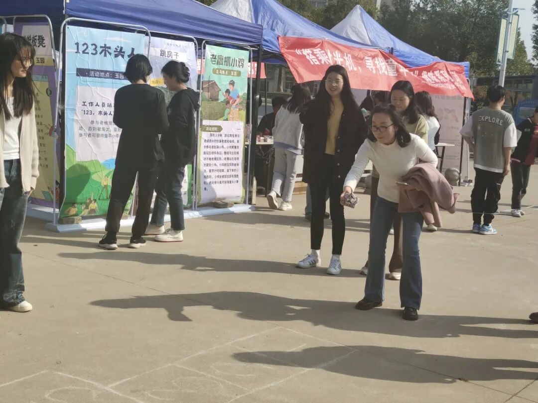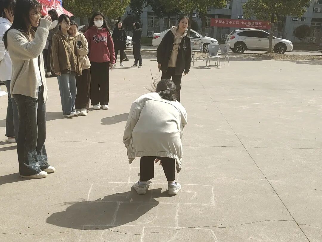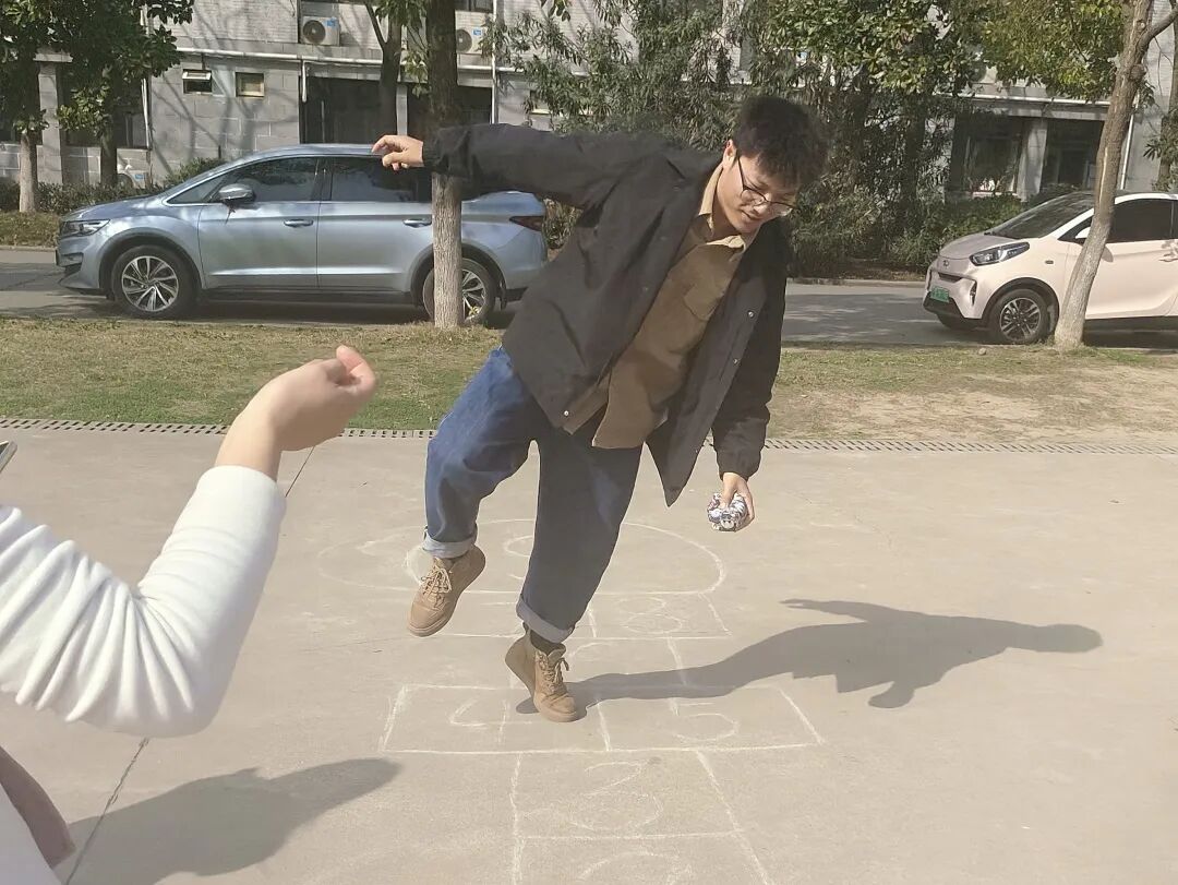 活动设有“踢毽子”“跳房子”“跳皮筋”“抢板凳”“123木头人”“翻花绳”“老鹰捉小鸡”“丢手绢”等8个游戏环节,全部是8090后的童年回忆,让现场的参加活动的老师们瞬间回到童年无忧无虑的时光,放下了工作的疲惫;同时,也看到很多00后们参与到活动中,他们也特别熟练的跳皮筋、翻花绳,实现了80、90、00的联动。在游戏中,师生们互相配合、互相鼓励,增进了彼此之间的友谊和信任。经过激烈的运动,大家都获得了童年小零食。参加活动的荣灿同学说道:“这些小游戏我在抖音上看到过,一直想试试,今天居然搬到现场了,我立刻一个一个玩了个遍,我还看到很多老师不好意思的过来参加活动,感觉老师们很可爱,也跟我们拉近了距离,希望以后还有更多趣味的活动,让我们和老师们一起增进感情。”
