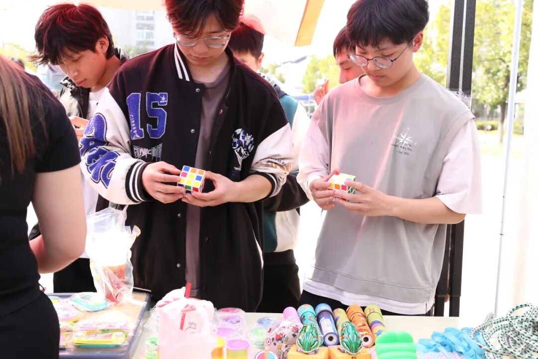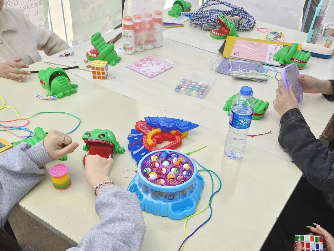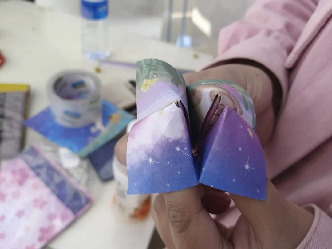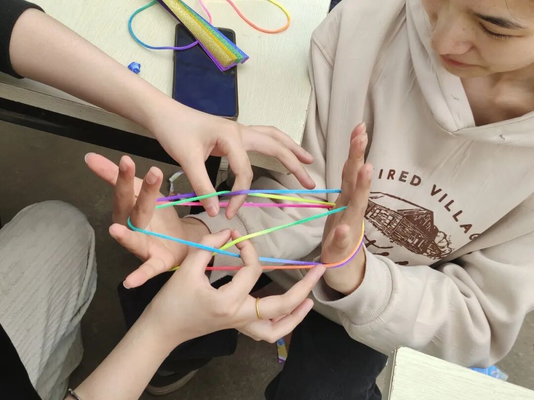 现场还有3个很安静的摊位,分别是“彩绳编织”“星星纸制作”“折纸艺术”,这是专门为喜静不喜动的同学们准备的,同学们一起认真地动手制作,互相帮助,运用手工材料和工具,创作出了各式各样的童年手工艺品。在创作过程中,同学们分享创意,不仅锻炼了动手能力,还增进了彼此之间的情感交流。