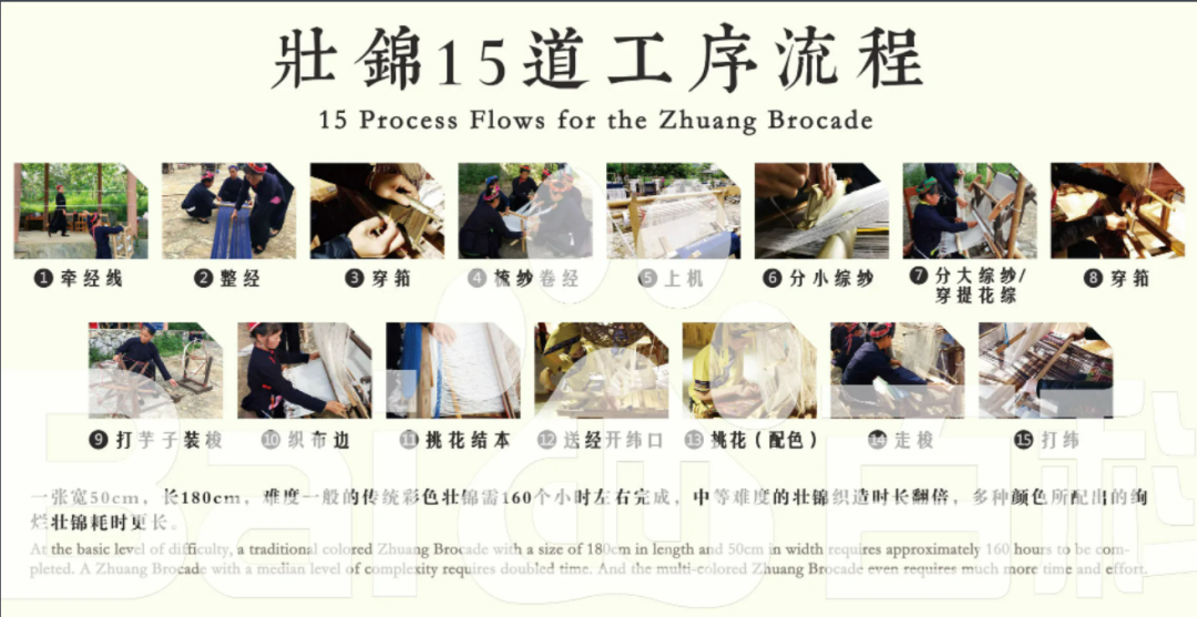 提到广西你们会想到什么?是“香”气四溢的柳州螺蛳粉?还是清甜爽口的百色芒果? 但其实广西还有一个极具代表性的民族手工艺品——壮锦。它的传承历史逾千年,是中华民族文化的瑰宝。本篇文章将从壮锦的历史、分类、所需工具与技艺、图案纹样和染色方法五方面来进行阐述。 世界上最大的壮锦 壮锦服饰 壮锦产品 千年历史 壮锦 壮锦是古老民族文化记忆的“活化石”。壮锦据传起源于宋代,壮文称为mbaw laiz fax,意为天纹之页。 考古证实,早在汉代广西已有织锦技艺。贵港罗泊湾汉墓出土的汉代黑地橘红回纹锦,是古代壮族地区出现的最早的织锦。据《唐六曲》和《元和郡县志》记载:当时壮族人民所织出的多种布料,已被封建王朝列为贡品。但真正能够称为“锦”的纺织品则出现于宋代。这也是为什么上面介绍壮锦的起源是宋代。 富丽堂皇的壮锦 至明清时期,壮锦发展达到鼎盛,编织壮锦是当时壮族妇女必不可少的女红。清代《竹枝词》写的:“十月山城灯火明,家家织锦到三更;邻鸡乍唱停梭后,又听砧声杂臼声。”这便是当时家家户户织锦生产繁忙的真实写照。 壮锦分类 壮锦主要有两种,分别是双色壮锦和彩色壮锦。双色壮锦采用通经通纬的织法,这种织法相对比较简单;彩色壮锦采用的是通经断纬的织法,织娘要根据花纹的变化不断地剪掉纬线。 双色的简单纹样,一位熟练的织娘三天就可以织出一米;一张宽50cm,长180cm,难度一般的传统彩色壮锦需160个小时左右完成,中等难度的壮锦织造时长翻倍,多种颜色所配出的绚烂壮锦耗时更长。可谓“寸锦寸金”。 工具与技艺 壮锦是壮族传统工艺美术精品,一般用麻线或棉线染上各种色彩,以原色麻线或棉线为经,以染色麻线或棉线为纬,用本地木制的土织布机手工精编而成。 “ 工具 1 常见的织锦机有竹笼织锦机、龙州织锦机和靖西织锦机,它们有各自的机架结构和织造原理,是流行于当地且符合当地的织锦习惯。 织锦机 壮锦织造需要有特殊的工具与技术,而且织造过程非常复杂,前后要经过 一共15道工序才能完成,缺一不可。 技艺 2 ” 【15道工序:牵经线、整经、穿筘、梳纱卷经、上机、分小综纱、分大综纱/穿提花综、穿筘、打芋子装梭、织布边、挑花结本、送经开纬口、挑花(配色)、走梭、打纬】 图案纹样 丰富多样的壮锦图案 “ 图案是构成壮锦的重要组成部分。除了色彩明丽,壮锦的图案也十分丰富而生动。这些图案大都来源于生活和大自然,来源于壮族的图腾崇拜,来源于壮族人民对美好生活的向往。 历经千余年发展的壮锦有自成体系的三大种类纹样,一是以几何装饰图案为主的连续纹样,二是以花卉为主题的复合纹样,三是以吉祥瑞兽为主题的纹样。图案生动,结构严谨,色彩斑斓,充满热烈、开朗的民族格调。 传统沿用的文案有水波纹、云纹、回字纹、编织纹、同心圆纹以及各种花草和动物图像。凤的图案在壮锦中独占鳌头,“十件壮锦九件凤,活似凤从锦中出”。这是由于壮族喜爱凤凰,视之为吉祥的象征。 染色方法 壮锦用植物染色 壮锦材料——上色后的棉纱 壮锦的艳丽风格与其他织锦明显不同,极具民族特色。那么这些颜色是从哪里来的呢? 原来,传统壮锦常用植物染色,壮族先民很早就学会使用植物来染色,如茜草用来染红,栀子、姜黄用来染黄,蓝草用来染蓝。 壮族人爱彩,壮锦多用重彩和对比色,对比鲜明强烈,由于配置得当,显得斑斓绚丽,华而不俗。壮族人用这些对比鲜明强烈的色彩,展示出壮族人民热情、爽朗、勇敢、朴素的性格。 ? 小结 2006年,壮锦技艺入选国家级非物质文化遗产名录。历经一千多年的发展,以壮锦艺术为典型代表的广西民族织锦艺术已成为我国传统民间艺术的重要组成部分。 我们相信,在未来,随着广西壮民族文化的不断传承与创新,壮锦一定会再现辉煌,成为中华民族文化所绘宏图中浓墨重彩的一笔。 浙江理工大学丝绸博物馆中摆放的壮锦 END 关注“浙江理工大学丝绸博物馆公众号” 我们带你了解更多丝绸小知识! 编辑:李敏敏 部分图文来源网络