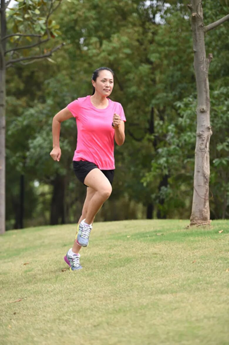 因此,我们中国的跑步爱好者在跑步时要注意,脚离地面越近越好,身体要放正,保持平衡。