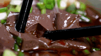 “望”:主要就是看颜色、看切面,真鸭血的颜色一般是暗红色,颜色太过鲜红是不正常的,而且真鸭血的切面,有很多小气孔,这是国为血液里有氧气的缘故。