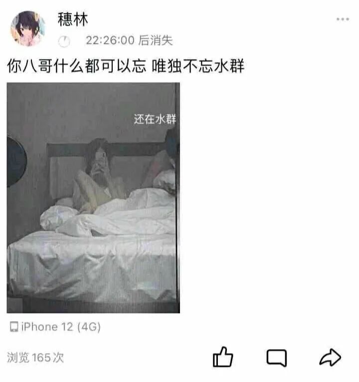 会总督闲来无事吃到了B站一个小up的瓜,然后我特地去求证了一番,才明白了这位15岁高一的小up到底发生了什么,又到底为何删号跑路?故事的主人公是B站一位不起名的小up主——穗林,原本在2021年1月之前,这人还是B站无数“藉藉无名”的小up主中的一份子,制作一些动漫二创的视频,而粉丝也就百来个而已。直到乐华旗下虚拟女团A_Soul出道走火之后,穗林也开始关注A_Soul相关的内容,并且二次创作了几个相关视频,其中最经典的视频就是《我好想做嘉然小姐的狗》,被无数粉丝奉为“至宝”,播放量一度突破百万。要知道对于常年创作动漫视频的穗林而言,百万播放量可能比她加入B站之后的总播放量还高,在尝到了甜头之后,也就愈发不可收拾。在这个视频走火之后,不少人建议穗林也加入虚拟主播圈,迅速出道。没想到这位15岁的小女孩还真的就开启了自己在B站的直播,而且还收获了一大批粉丝。直播间也出现了一大批愿意为她消会总督费的粉丝,开通了“直播舰队”,也有了不少舰长、提督以及总督。为了让大家有个确切的印象,首先来科普一番,B站直播舰队的舰长198/月、提督1998元/月、总督19998元/月。而“八哥”(暂时如此称呼,因为已经删号)正是穗林直播间里的贵客——总督。而在9月底,榜一大哥“八哥”约会(说是约会,其实懂得都懂),深夜发了一条qq动态,配文“你八哥啥都可以忘,唯独忘不了水群”再附上一张二人躺在同一张床上的照片,引起了不少粉丝的热议。从评论区可以看见,有人在调侃:这是“付费内容”。显然此人是明白了这张动态内容的不妥,还有人调侃“八哥”:这个时候你为何是在一旁看着?关于这位“八哥”有两种说法,一种是说这位“八哥”是一位大学生,另一种则是“八哥”一位30岁的“大叔”,八哥具体的年龄我并不理解,但我更相信“大学生”这种说法。而随着穗林“约会”榜一这件事在某社交软件上发酵,不少粉丝开始“网暴”穗林,有人骂她是lkd,当然也有人说男方“八哥”这也下得了手。随着舆论的发酵,穗林与“八哥”也是立刻将B站账号注销,选择跑路。但随着销号之后,穗林某次直播的内容又被网友翻出来,发现曾经在某次直播中,穗林就“约会老头”外出逛街,从对话来看两人的关系十分亲密,并不一般。