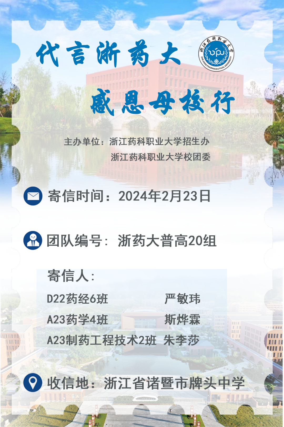 牌头中学通过此次宣讲,牌中学子对浙江药科职业大学有了更深入的了解,包括专业设置,课程安排等方面,同时增加了浙江药科职业大学的知名度,加强了牌中学子对浙药大的信任度和好感度,从而在未来的高考填报时,将浙药大作为优选。