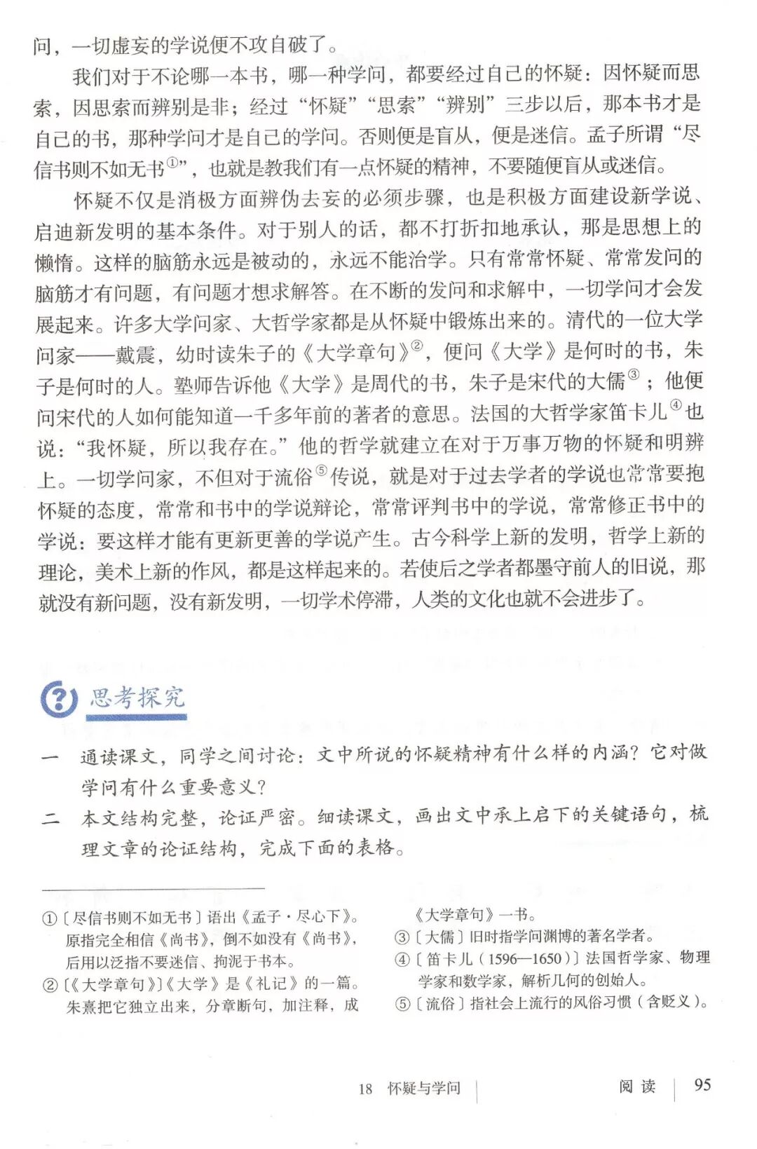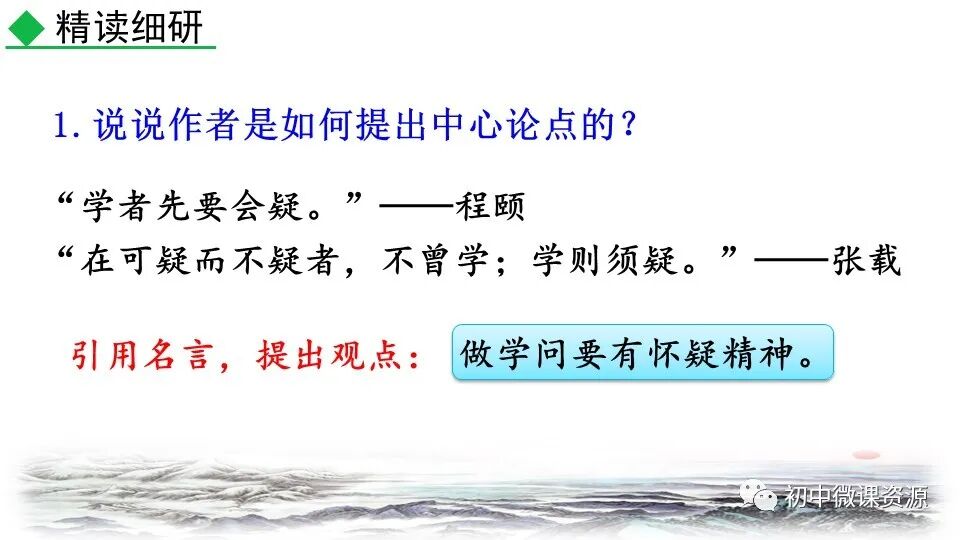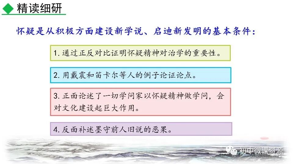 列举戴震和笛卡儿的事例,从正面 阐述学问家做学问的态度。