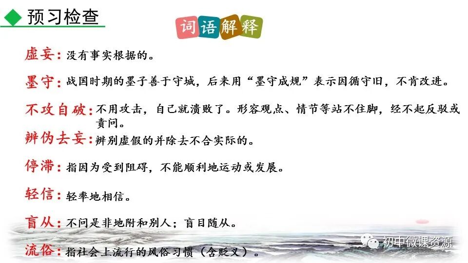 8.辨伪去妄:(对一些事物)要善于辨别,分清真假,(留下真的)去除虚假的。