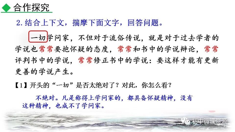 不能。用这些词,是为了强调所有 的学问家全部都包括在内,都善于经常 怀疑、提问、评判、修正过去学者的学说。 这是建设新学说的基本条件。