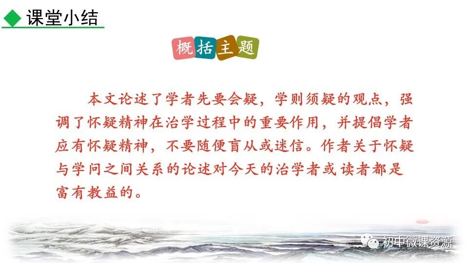 这是一个过渡句,起承上启下的作 用,前半句归结上文的论点,后半句提 出本段的论点:怀疑也是从积极方面建 设新学说、启迪新发明的基本条件。