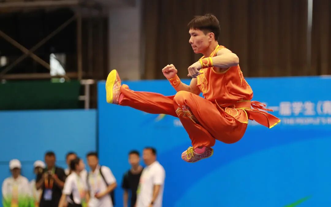 首届学青会(校园组)武术套路大学男子组自选南拳项目决赛中。