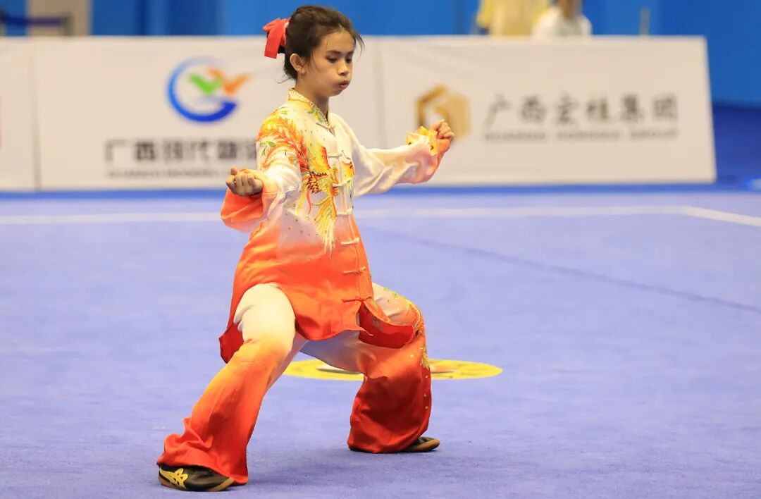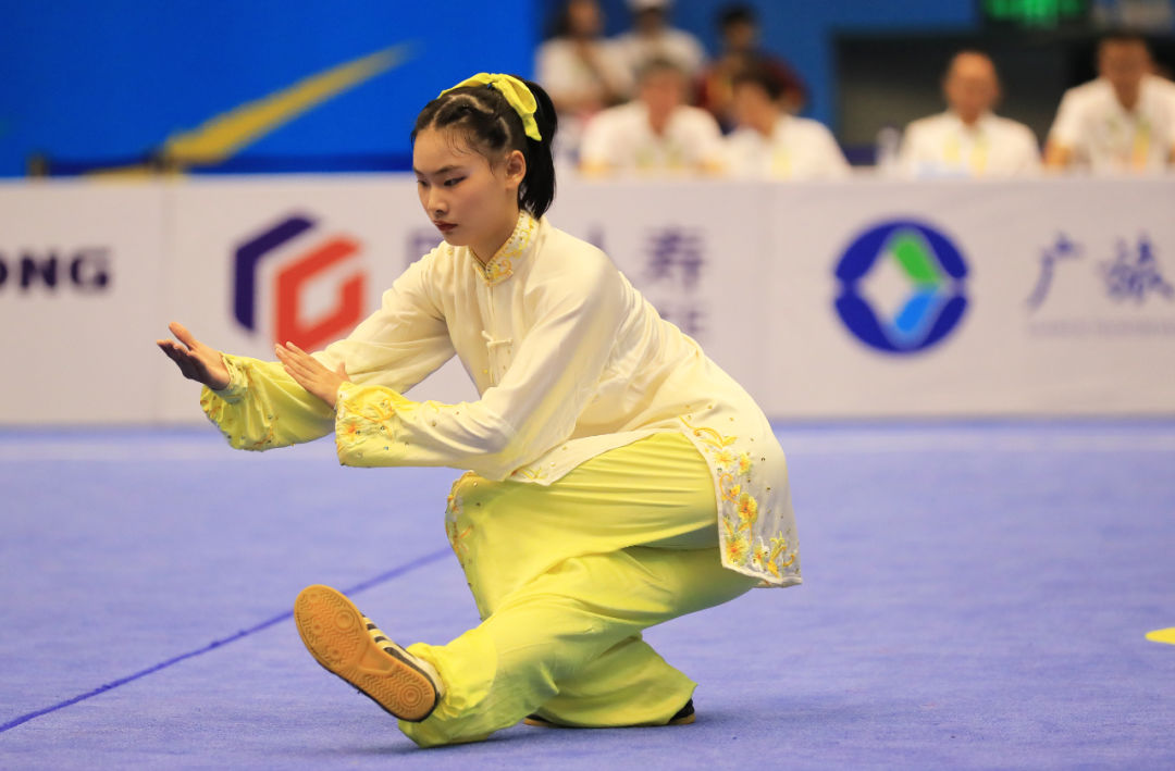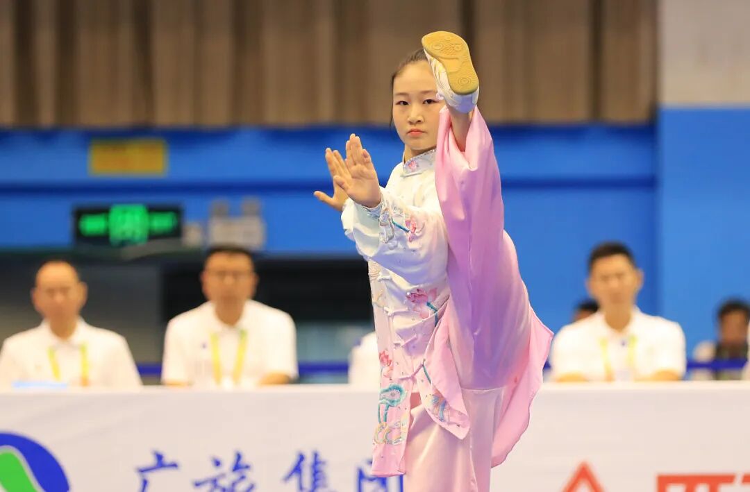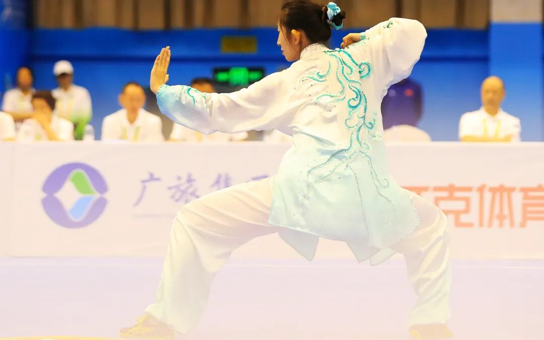 首届学青会(校园组)武术套路中学女子组自选太极拳项目决赛中。