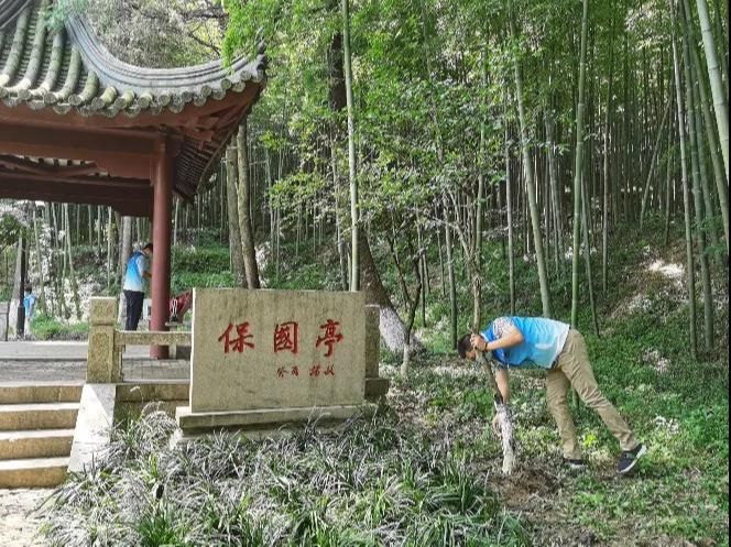 保国亭位于亭林园内的玉峰山北麓。1939年12月27日,章立、许桂森等8名新四军伤员和民运工作人员被日寇杀害于玉峰山北麓。1993年5月,为纪念他们的英勇事迹,建造了保国亭。2002年,在保国亭前新增纪念碑,记载8名英勇就义烈士的故事。白蚁房管所组织专业人员,利用白蚁探视仪等探测设备,结合“问、看、听、探、撬”白蚁危害“五字检查法”,对保国亭及周边树木进行了白蚁危害检查,未发现白蚁危害。