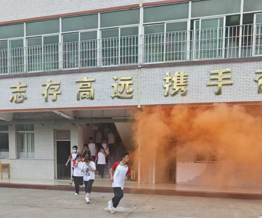 在教室中,老师迅速进入状态,他们镇定自若地指挥着学生。“大家不要慌,用袖口或者毛巾捂住口鼻,弯腰低姿,按照我们之前演练的路线有序撤离。”老师的声音沉稳而有力,学生展现出了高度的纪律性,他们迅速行动起来。前排的同学快速打开教室门,然后在老师的引导下鱼贯而出,后排的同学紧紧跟上,没有拥挤,没有推搡。