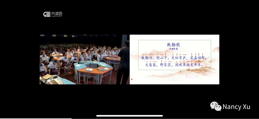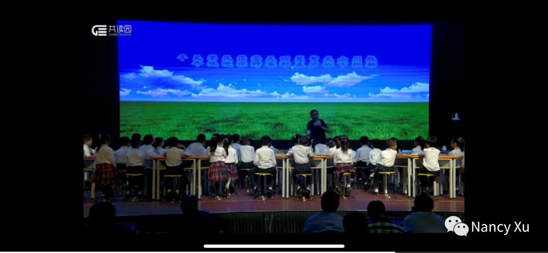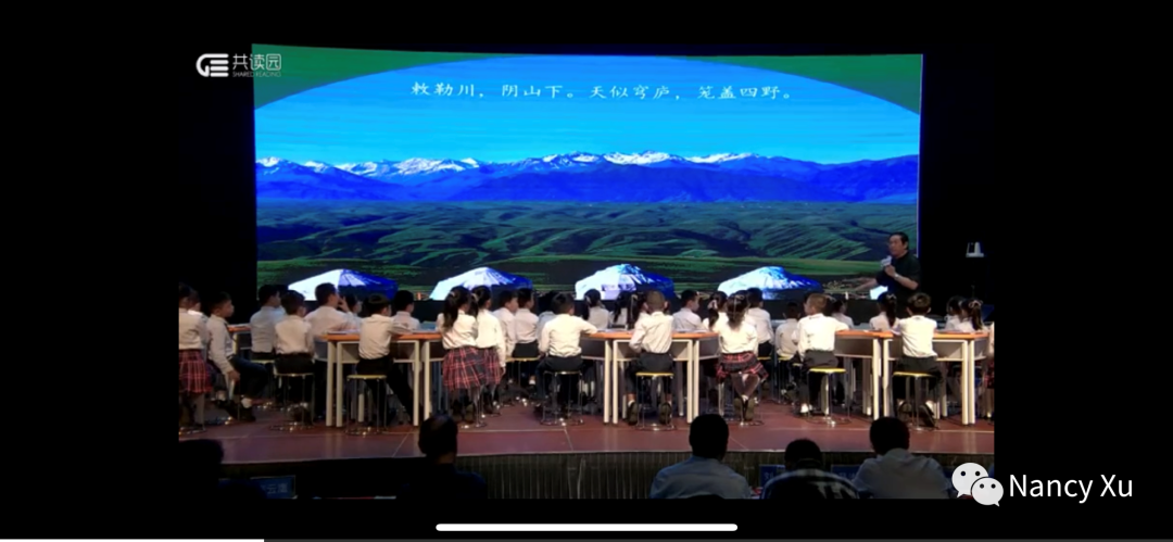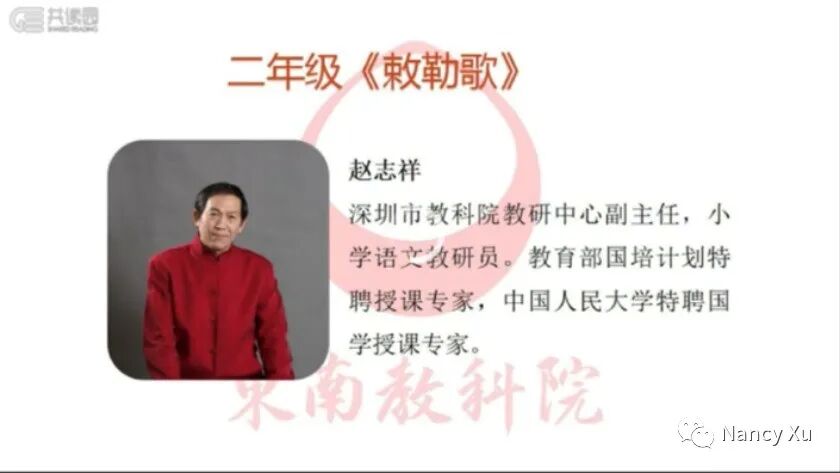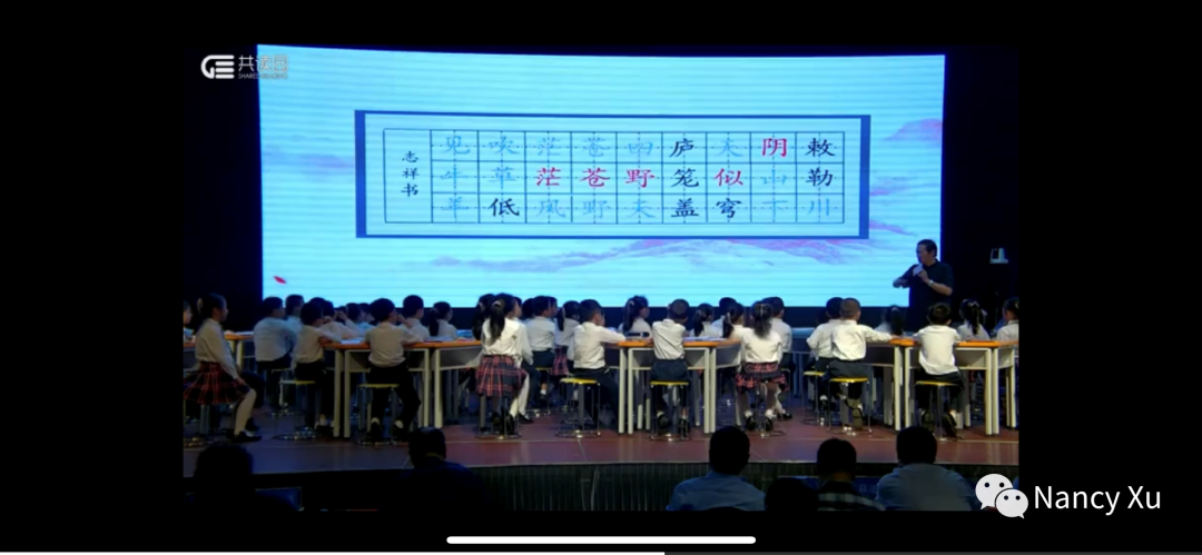 这是一堂古诗鉴赏课,赵老师用他渊博的学识、幽默的语言、高超的吟诵领着孩子欣赏了古诗文的韵味。通过图文理解、反复吟诵、背景介绍让孩子理解古诗、欣赏古诗、书写古诗,聆听古诗,丰富了孩子的文学知识,在孩子们的心中埋下了古典文学的种子。二年级的孩子天真可爱。赵老师一点没有名师的架子。像一个童心未泯的长者和孩子们对话。言谈举止之间,充满童趣。这堂课带着同学们玩看图猜人名的游戏,给孩子们设置闯关朗诵游戏,和同学们比试吟诵水平,给孩子们讲故事。让孩子们在课堂上渐渐放松,大胆发言,允许犯错,表达想法。真正做到了用孩子的语言去教育孩子,去点亮孩子,去保留孩子的童真童趣。教学中,赵老师通过闯关的形式引导学生多种形式朗诵古诗。复古竖版、繁体字版、篆书版、甲骨文版,再到挖空版。最后吟诵古诗。让学生在反复朗诵吟诵之中,熟练掌握古诗的同时,也感受到中国文化的博大精深,表达方式的丰富多样。通过古诗背后的故事,让孩子们感受到古诗蕴含的力量。通过挑战甲骨文版古诗,让学生感受到背诵诗文的重要性。通过补全古诗练写生字,感受书法书写的仪式感。让流传千古的古文走近孩子的内心,在孩子的心中沉淀。让孩子们觉得古诗不再遥远。古诗学习不是枯燥无趣,也可以有趣有用。作为公开课,一般都是老师占主导。因为怕失控。可是赵老师却一反常规。即便在如此大型的展示课上,赵老师始终以生为本,尊重学生。很多环节,赵老师都是用问句而不是祈使句。通过问句让孩子们选择,给予孩子们充分的尊重,同时也最大程度的激发了孩子参与的兴趣。孩子们也不再拘谨,敢于表达,敢于犯错,在尊重和理解中完成了教育。