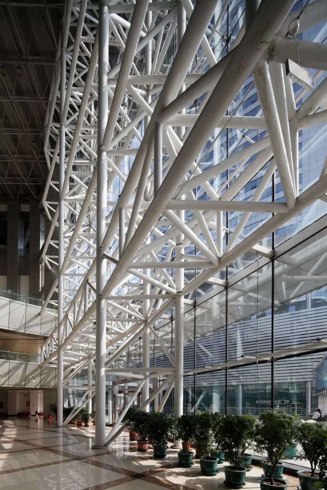 整栋建筑只设4条变形缝,最大长度270m。管桁架挑出最大长度38m。技术设计阶段顺利通过国家级建筑结构行业专家的审查。