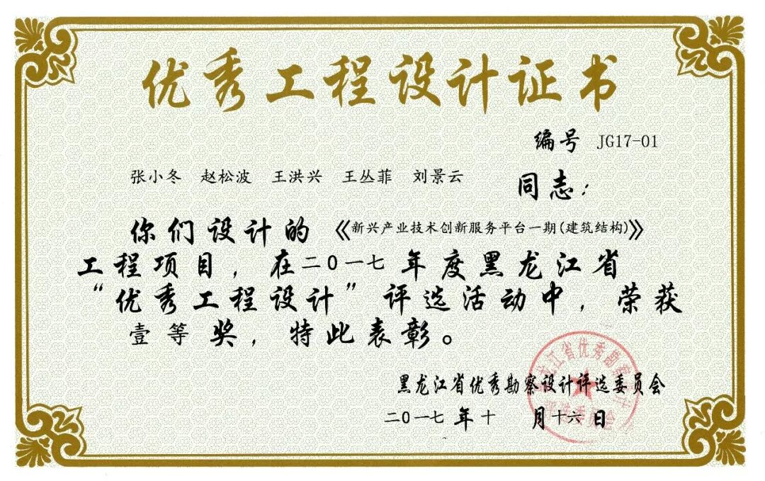 哈尔滨科技创新大厦建设规模10万㎡,位于松北科技新城,是全省重大工程项目。216m的建筑高度为黑龙江省之最,是拥有行政办公、科技项目研发与科技产品孵化、数据中心等多功能的超高层写字楼。建筑结构采用的钢管约束混凝土柱、预应力刚架索梁等多项新技术为省内首创,并获2011年度黑龙江省科技进步一等奖、2017年黑龙江省建筑结构设计一等奖。