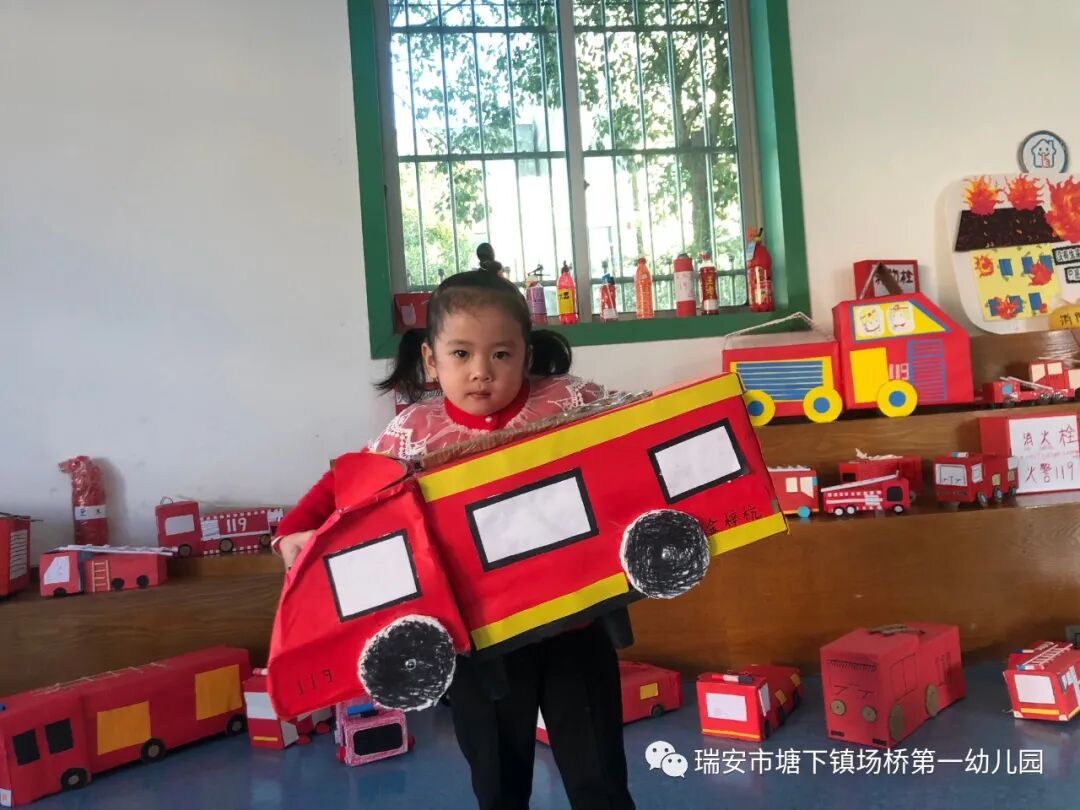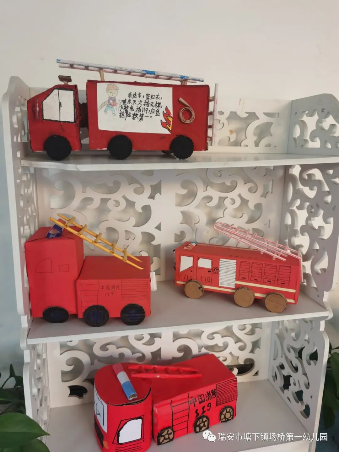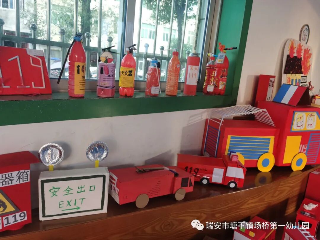 为增强幼儿的消防安全意识,增进亲子之间的互动合作、情感交流,提高孩子的动手能力、创造力,场桥一幼举办了“消防器材”亲子手工制作活动。此次活动得到家长的积极参与,孩子和家长利用废旧物品共同制作消防栓、灭火器、消防车、应急照明灯、消防帽等手工作品。本次活动共展出100多件作品,每件作品都是利用废旧物品制作的,传达了孩子和家长对消防安全的重视和对美好生活的憧憬。