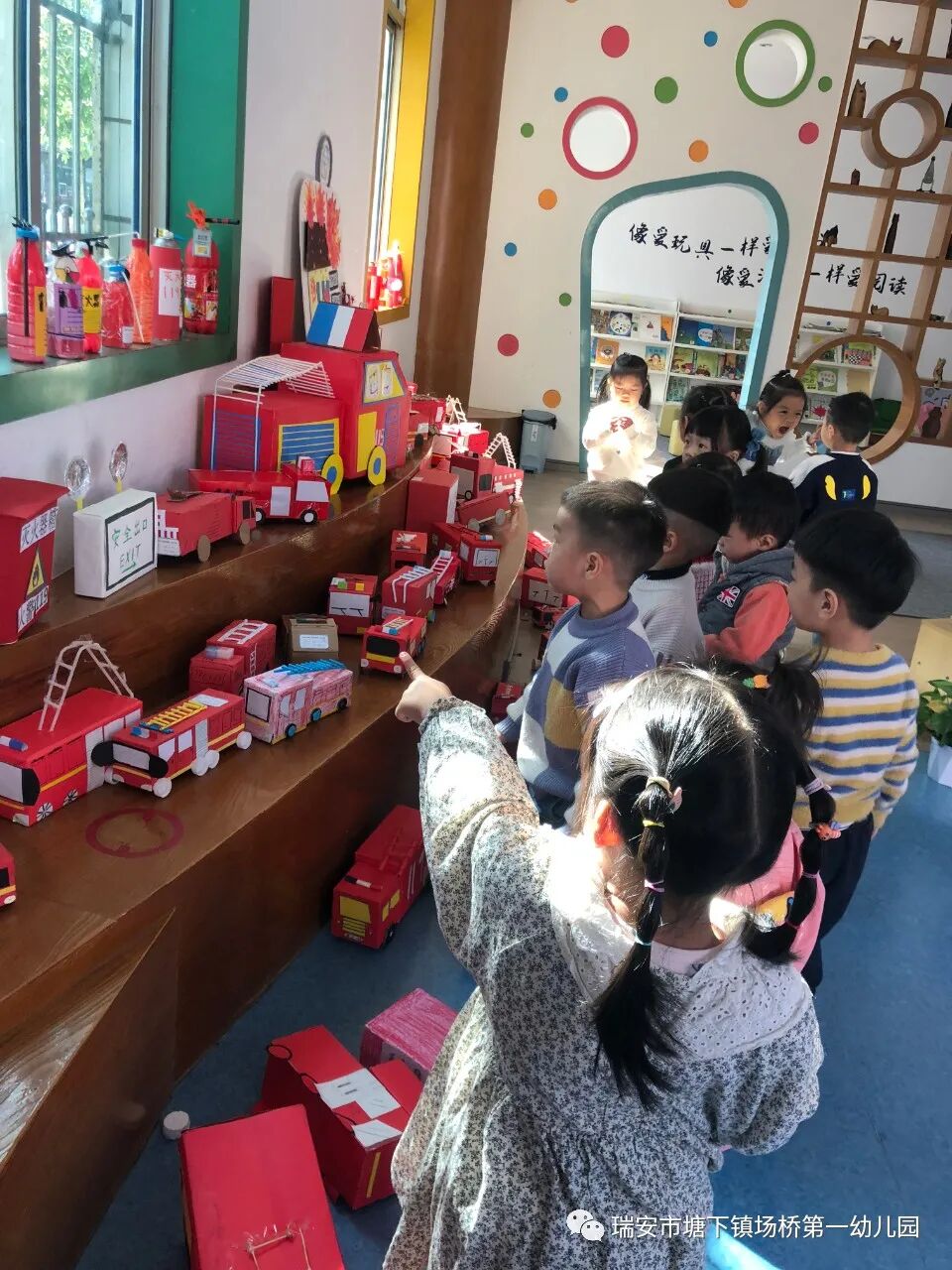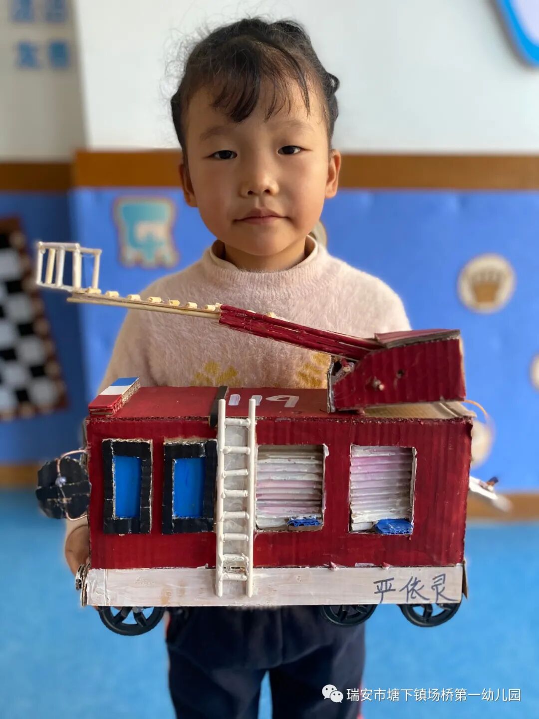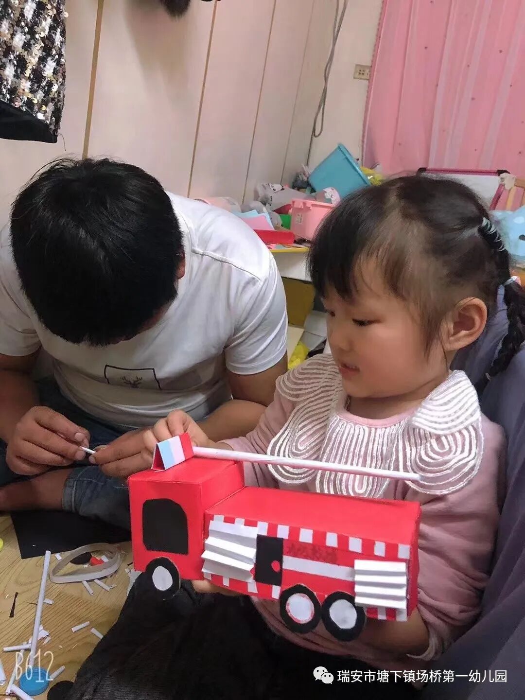 为增强幼儿的消防安全意识,增进亲子之间的互动合作、情感交流,提高孩子的动手能力、创造力,场桥一幼举办了“消防器材”亲子手工制作活动。此次活动得到家长的积极参与,孩子和家长利用废旧物品共同制作消防栓、灭火器、消防车、应急照明灯、消防帽等手工作品。本次活动共展出100多件作品,每件作品都是利用废旧物品制作的,传达了孩子和家长对消防安全的重视和对美好生活的憧憬。