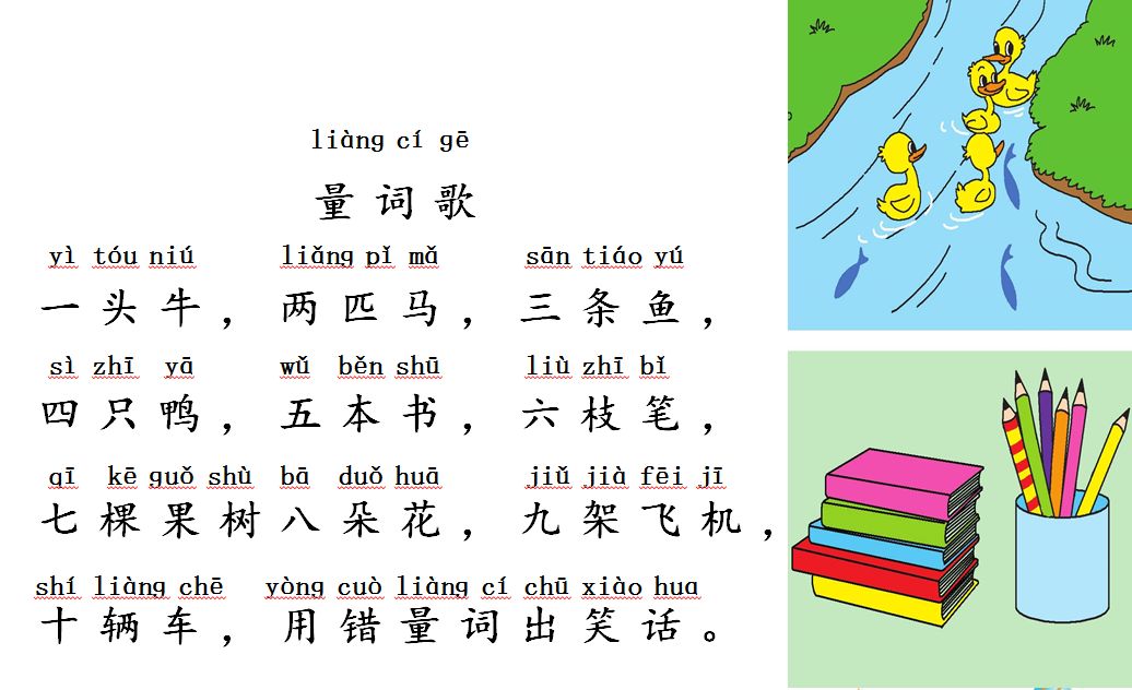 1.一(条)小鱼、小河、道路、狗、裤子、小船、尾巴