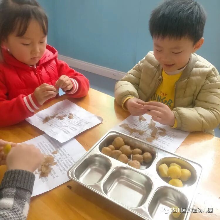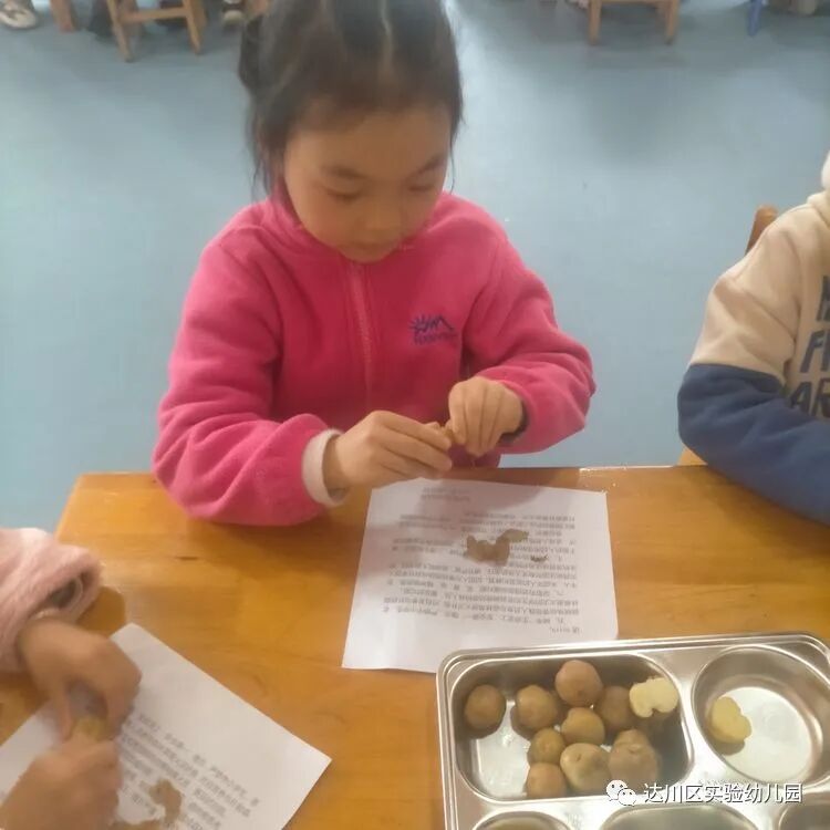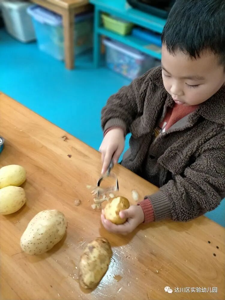 种植活动是幼儿最感兴趣的活动之一,也是最能激发幼儿观察、探究,促进幼儿创新能力、动手能力、交往能力及团队合作等能力的发展,很好地丰富幼儿认知水平的有效途径和方法。 2020年秋季,我们大一班有了属于自己的种植园区,宝贝们非常高兴,大家一起分工合作,有的挖地刨土;有的浇水润土。 所有的准备活动已就绪,那么种植什么呢?宝贝们开始了激烈的讨论:(萝卜、大蒜、土豆等),经过举手表决,宝贝们最终决定种土豆(宝贝们都喜欢吃土豆) 接下来,宝贝们把土豆种在了我们的种植园区,期待着土豆宝宝快快长大。 一天,两天,三天,小白菜都发芽了,土豆没有发芽,又过了几天,哇,小土豆长高了耶,还长出叶子了。土豆终于探出头来和小朋友们见面了。 哇,小土豆长高了耶,还长出叶子了。 小土豆又长高了哦,可是好像越长越瘦了。小土豆可能是需要营养了,我们一起给小土豆施肥吧! 在观察土豆的过程中,宝贝们还做了观察记录呢,看,宝贝们对土豆可上心了。 宝贝们没事就去看一看土豆长高了没有?成熟了没有? 一个漫长的寒假过去了,宝贝们一入园就去种植园看看土豆。 土豆苗长好长了呀,是不是成熟了。 咦,快看,有土豆了。 宝贝们一致觉得土豆成熟了,可以挖土豆了。 宝贝们开始分组挖土豆,有的负责挖土豆,有的负责捡土豆。 “哇,这里有一个土豆” “哈哈哈,我捡到一个大土豆” “嘿,我捡到一个迷你型小土豆” “咦,这是一个穿绿衣服的土豆” …… 在宝贝们的欢声笑语中,结束了我们的土豆收获之旅。看着盆子里的一个个土豆,宝贝们脸上笑开了花。 收获了土豆,接下来我们来讨论土豆用来干什么。宝贝们异口同声地说,用来吃。(但是穿了绿色衣服的土豆可不能吃哦!发芽和变绿的土豆中含有一种有毒物质龙葵素,如果吃了发芽、变绿的土豆便可引起中毒。) 怎么吃呢? “土豆肉丝” “薯条” “红烧土豆” …… 土豆有限,我们不能做出这么多土豆美食,大家举手表决,最终大家统一意见,吃薯条。 我们在网上查询了薯条的做法。大家齐动手 ,陈思帆负责到厨房借削皮器,会削皮的宝贝负责削皮,会切土豆的宝贝负责切土豆,处于安全考虑,老师们负责炸薯条。 薯条出锅了,小朋友们一起品尝。 “哇,好好吃”小朋友欢呼到。 大家在做薯条的时候 ,发现大土豆适合做薯条,小土豆不适合,那么剩下的小土豆该怎么办?宝贝们又开始了讨论。 “红烧土豆” “麻辣土豆”…… 最后大家举手统一意见:红烧麻辣土豆。 宝贝们齐动手,一起帮土豆剥皮,看宝贝们是不是非常认真,非常可爱呢! 萌宝日记 老师也没有闲着,炒呀,炒呀,香味扑鼻而来。 哇,红烧麻辣土豆出锅了,宝贝们赶快吃起来吧。 “老师,好好吃” “老师,我还要吃” “老师,我们明天从家里带一些土豆,我们再来一起做”“老师,我们下次做琅琊土豆” …… 虽然我们今天的活动结束了,但是相信种植活动带给宝贝们的快乐和收获会持续很久。 幼儿通过亲自播种、观察、照料、收获以及烹饪等一系列活动,让幼儿了解了生命的成长过程,使孩子们进一步了解了植物的生长规律和大自然的现象。幼儿从种植活动中获得了初步的种植经验,对幼儿进行了热爱生命的教育,培养了幼儿对大自然的热爱。孩子们从活动中也感受到劳动与合作带来的快乐,感悟到粮食的来之不易,并由此产生尊重和珍惜自己及他人的劳动成果的积极情感。![]()
