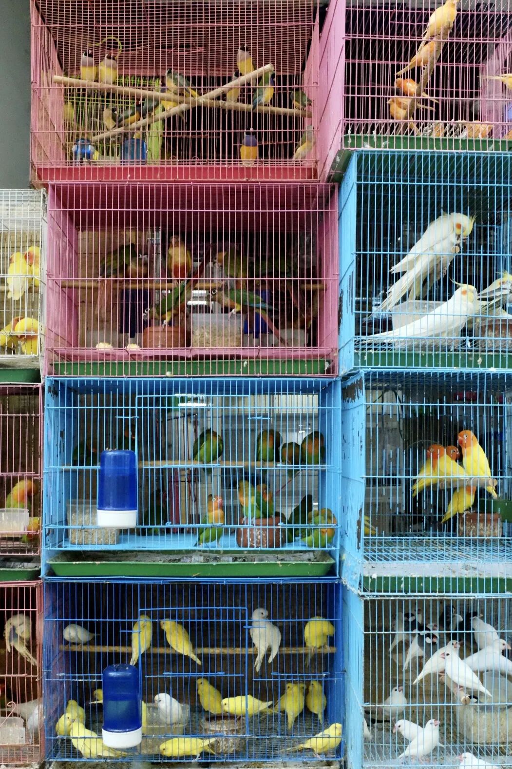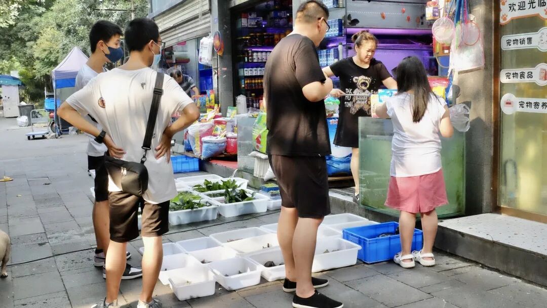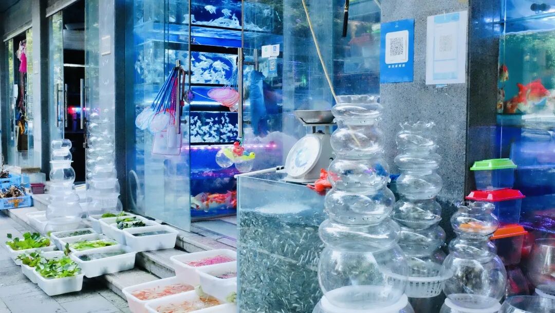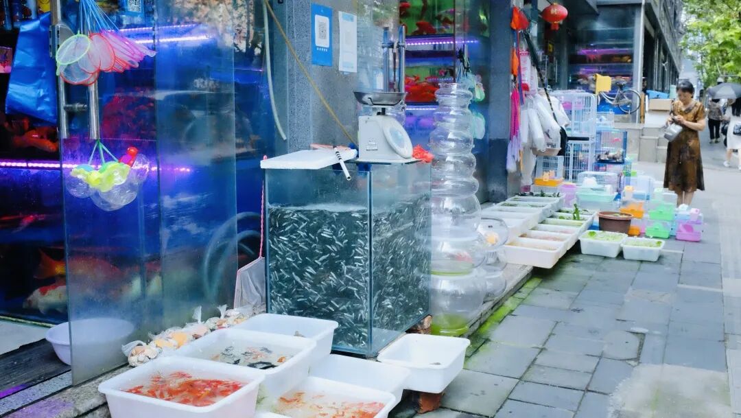 青石桥不止海鲜和肥肠粉 还有可可爱爱的花鸟市场 成都的热浪也被茂盛的梧桐叶?? 与鱼缸里蓝汪汪的水隔离?? 捞金鱼、听鹦鹉叽叽喳喳吵吵闹闹???? 隔着笼子逗兔兔、龙猫?? 看小龟伸长脖子东张西望?? 夏天的快乐,可以浓墨重彩大汗淋漓 也可以轻盈水灵,生机勃勃 如果没去过,很多朋友会以为青石桥花鸟市场挨着著名的海鲜市场,是湿答答的、拥挤繁荣的样子。实际上青石桥花鸟市场离海鲜市场还有接近900m的距离,位于新开街,一整条街都是售卖鸟鱼虫,花则在路东的叠翠城里。 它应该是目前成都最大的花鸟鱼虫市场了,热带鱼、多种金鱼、蛙、龟、鹦鹉、兔子、猫、狗、蜥蜴、龙猫…提笼遛鸟的大爷和放暑假的小朋友,都可以在这里收获近距离接触“神奇动物”的快乐! 成都土著小伊回忆说小时候特别喜欢去青石桥花鸟市场,不只暑假,周末也经常去。爸妈去买花(那年生可能还没有三圣乡花卉市场),小娃儿就去看小动物,回家后多半还写了关于“逛花鸟市场”的作文。但看小动物的快乐完全可以压过写作文的“痛苦”,所以小伊现在回想起来都是感叹:“好多小动物,好乖好安逸!” 逛花鸟市场-写作文的优良传统被下一代完美继承。因为疫情,小伊的哥哥想让娃娃获得水下生物的知识,也带他去青石桥,指着大鱼缸里的热带鱼说:“看,这就是海底世界!”孩子睁大眼睛好奇心爆棚流连忘返,也完全忘记了回家要写读后感这事儿。 所以无论哪个年代,玩乐的方式有多么丰富,对小朋友来说,童年的快乐都可以特别简单;对家长们来说,带孩子亲近、认识小动物,让他们在小小市场获得大大体验,就是写出暑期作文的最佳方式。 回忆完小时候,长大后再来逛青石桥花鸟市场,会收获完全不一样的美学体验。 层层叠叠的鱼缸就是最好的拍摄背景墙,卖鱼的店家几乎所有的鱼缸都是蓝、紫、红的光,与色彩斑斓的鱼在一起,营造出梦幻迷离的场景。你可以单纯地欣赏各种高级的游鱼,也可以沉浸式地体验仿佛置身水底世界的氛围,在获得店家许可后还可以尽情创造王家卫style人像。在成都拍港风,谁能比得过青石桥花鸟市场!随手一拍就是《重庆森林》。 先来赏鱼,它们姹紫嫣红“开遍”。你看,一大群自带微笑唇的血鹦鹉鱼向你涌来。 另一缸血鹦鹉,这真的不是蜷川实花的摄影棚吗? 龙凤锦鲤,蓝幕前摇曳生姿。 银鱼鱼如其名,“自古蓝白出CP”。 见了这些锦鲤和鹦鹉鱼,才更近一步体会到,什么叫斑斓。 看,一个张着嘴的憨憨从你面前游过,罗汉鱼不仅额头醒目,肌肤有流光,小鳍似薄翼。 在五彩小鱼中,小黄鱼凭撞色脱颖而出。 彩色的小蝾螈爪子特别可爱;黑白魟实力演绎:“人生像一件华美的袍”。 以下是鼎鼎大名的金龙鱼(第一次见到本尊),图片看上去“平平无奇”,但实际上“长身玉立”,约有70cm,鱼鳞会在波光里显现出流动的粼粼之色,非常美丽。它是这家水族馆里最“高贵”的那一位,大家可以猜猜它的身价。 但是换一家水族馆,金龙鱼就输了。看这王者风范,名字更霸气,是成吉思汗鱼! 我们看到非常搞笑的一幕。在隔壁鱼缸里称王称霸的金龙鱼,在这里集体向大佬行注目礼,目光一直追随它??,不敢造次。 但意外的是,隔壁70cm长的金龙鱼比成吉思汗鱼还要贵,不愧是名品。 当然更多的是平价的小可爱啦,在市场里最常见的就是斗鱼和小金鱼。斗鱼分种类不同,塑料袋装10元/条、20元/条、40元/条的都有,小盒子装的大概贵5-10元。 小伙伴Kiyo收获了一条斗鱼,它的种类属于“半月”,花色是“白糖”,所以有非常美丽的名字叫“白糖半月”。 饲料10元/包,45元收获欣赏游鱼的快乐。 接下来我们来体验另一个项目——捞金鱼。小金鱼价格也非常亲民,根据不同的种类,基本5-15元/条。 这一定是暑假里孩子最喜欢的项目了,很多店都在街边摆放了白色塑料筐装小金鱼,走过路过的孩子们的目光完全无法离开它们,一定要捞一捞再走。 如果看中了店里的鱼,也可以跟老板申请自己捞(前提是掌握了捞鱼小技巧)。 在此奉上捞鱼小技巧: 1.尽量慢下来,从金鱼背面下网; 2.从尾部捞起并迅速甩进盆子; 3.要注意盆和网的边缘和内壁是否光滑无毛刺,不要划伤金鱼。 图据网络 除了鱼鱼们,这里还有很多养鱼配件,水族箱、普通鱼缸、各类水草、水族箱造景…一应俱全。 我们买鱼的这家店,所有的造景都是老板亲手完成,价格按照水箱大小和造景复杂程度不等,普通大概300-500元一个。 遇见不少独自前来买鱼的小朋友,他们拎着塑料袋,里面装着水灵灵的小鱼,就是最具有夏日童趣的画面之一。 在《没想到吧,成都95后流行——养鸟》一文中,我们聊了聊了养鸟的快乐:撇脱好养,不费钱和时间,还能收获一个粘人小宝贝。但当你真的来到花鸟市场,你只会觉得——好吵!?? 吵归吵,但是真的可爱。你看这群牡丹鹦鹉,每一只都化了妆,朝你露出蒙娜丽鸟的微笑。 蓝色的虎皮鹦鹉真的美炸了!而且是接近于月蓝的蓝调哦,特别温润。它们哥儿几个整整齐齐站在杆子上,一动不动,优雅稳重。 我们以为这种高级色的虎皮鹦鹉会比较贵,老板淡淡地说:“60块一只。” 让人大跌眼镜的是乌龟??,以为它们会是不动如山的沉稳型性格,没想到全场最活泛的爬行动物就是它们了。尤其是草龟,属于费头子里的轰炸机,我们遇见就遇见了这样的一只,永远在ban,永远想要从水池子里“越狱,但是又很怂,把手或瓶子往它头
