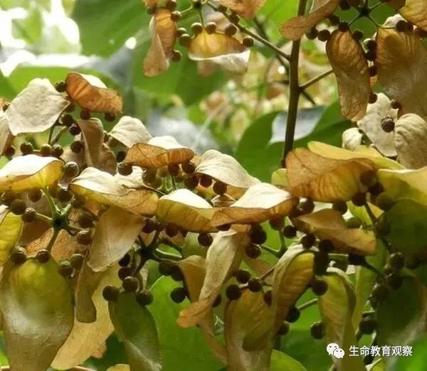 喜树的果子,小时候经常捡来把玩儿,因为它长得非常特别,有长长的梗。现在,野生的喜树很少见了,已经被列为国家重点保护野生植物,如果有幸见到,请一定好好保护它。