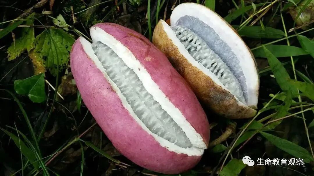 八月瓜也被叫做“爆炸瓜”、猫屎瓜,成熟的果实外面的果皮会自己炸裂,露出白花花的果肉,果肉颜值真不算高,但滑嫩香甜……