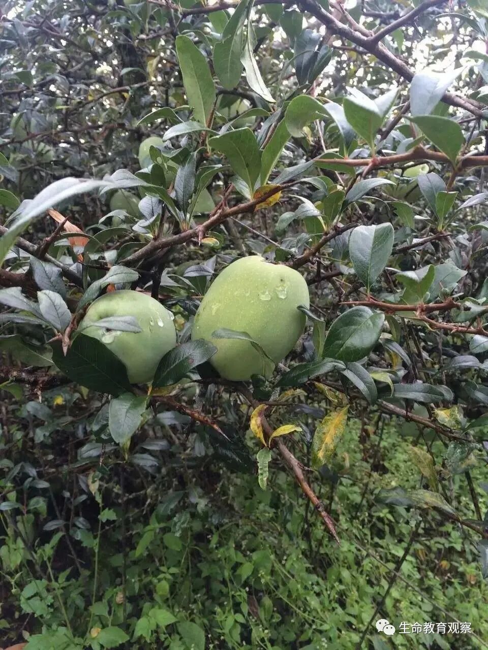 羊奶果是密花胡颓子的果实,也是一种转型于园林的一种野果子,口味也是酸甜略涩,密集分布于枝干上,因成熟度不同,会呈现出绿、黄、橙、红多种颜色,也是非常美丽的。