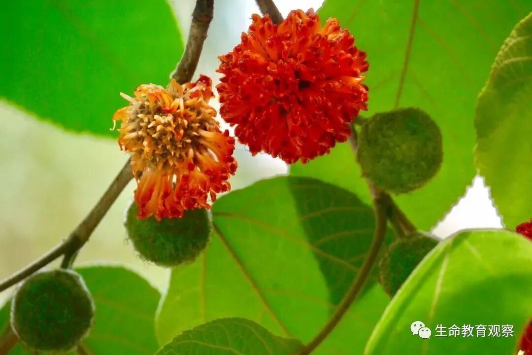 外形大小都非常像杨梅(小时候就认定它就是杨梅的花友有没有),个人觉得成熟的构树果子颜值比杨梅高,果实外露,呈漂亮的橙红色,非常美丽,看着非常诱人,味道确实也是甜甜的,经常看到有蚂蚁吸食,可能因为不卫生,家长是不允许吃的。