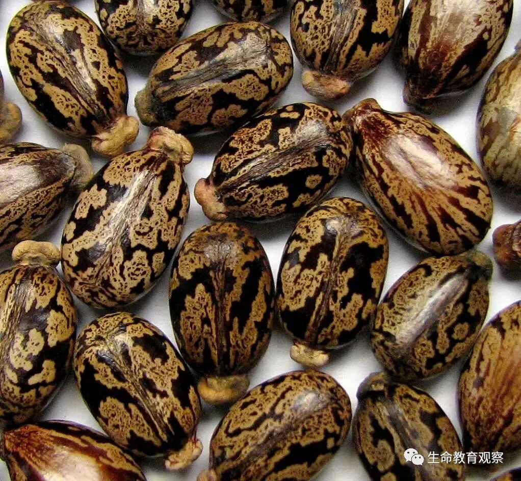 就是蓖麻的种子,硬硬的,表皮光亮并有黑、白、棕色斑纹。它含有剧毒物质——麻毒素,大家一定不要误食,会危及性命。