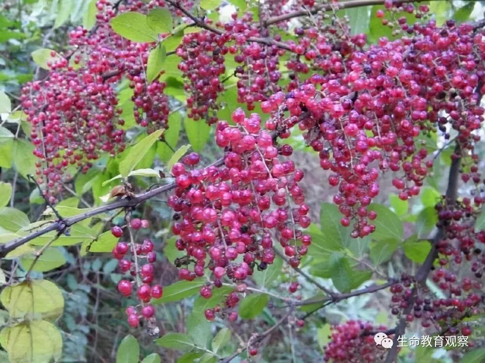 野果100种大全一串一串的,非常像葡萄,成熟时红红的,口味有点酸,常用来泡酒喝,是一味中药哦。