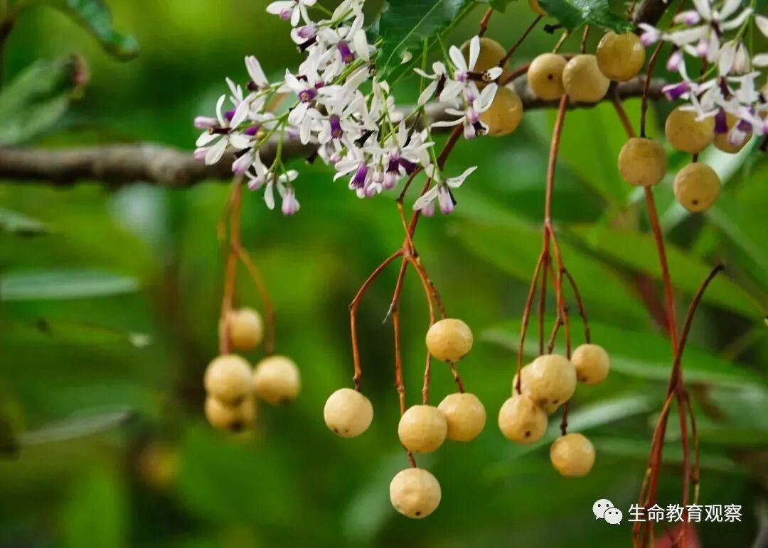苦楝子是苦楝树的果实,成熟的苦楝子淡黄色,外形、大小都酷似龙眼,果肉松软,遇到水就变得黏糊糊的 ,非常酸苦,据说是一味中药。