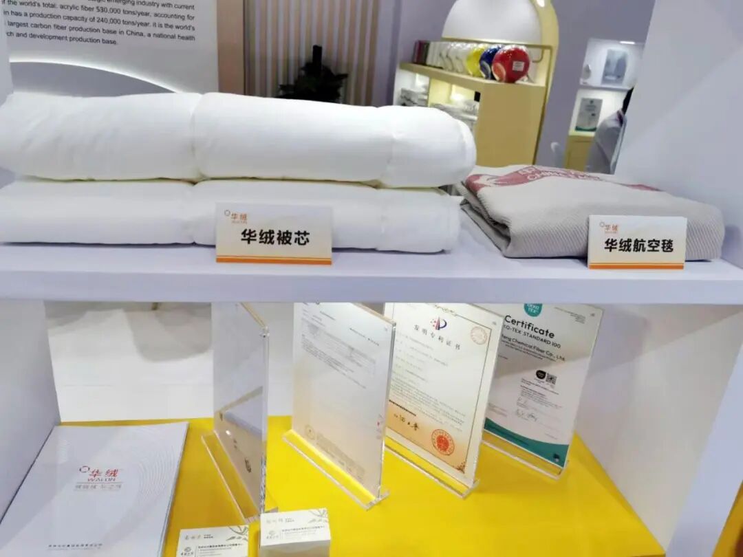 华绒是吉林化纤集团着力打造的高端纤维品牌。吉林化纤集团副总工程师、正高级工程师刘明哲介绍,华绒纤维的细度在0.4D-1.5D的范围,具有轻盈、柔软亲肤、温暖、耐虫蛀抑菌,以及强度高、耐日晒的突出特点,即“轻、暖、柔、洁、强”。华绒纤维比棉绒更柔软,比羊绒更温暖,比鹅绒更轻盈,突出了纤维的柔软性、轻量、湿热平衡等特点,更加温暖、轻柔、舒适。