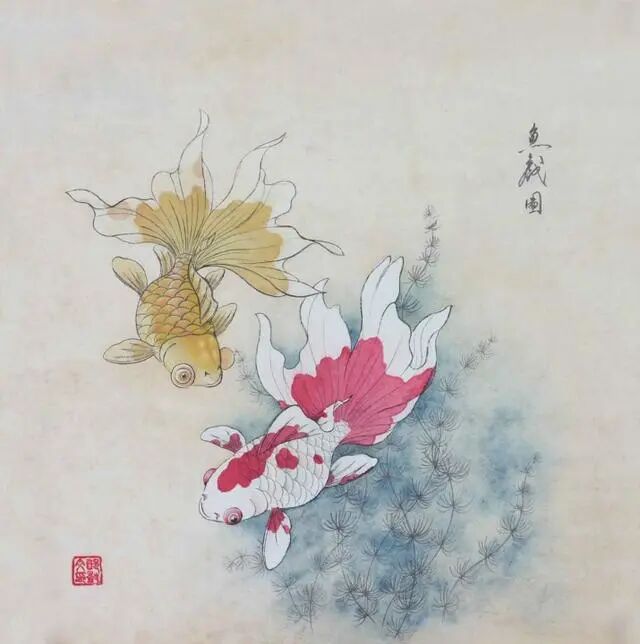 整幅鱼戏图以金鱼为主体,水草为辅助,画面层次感强!