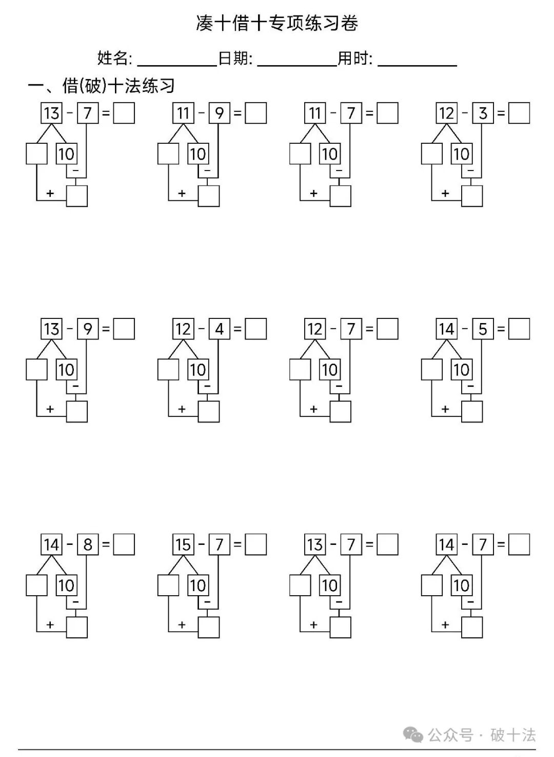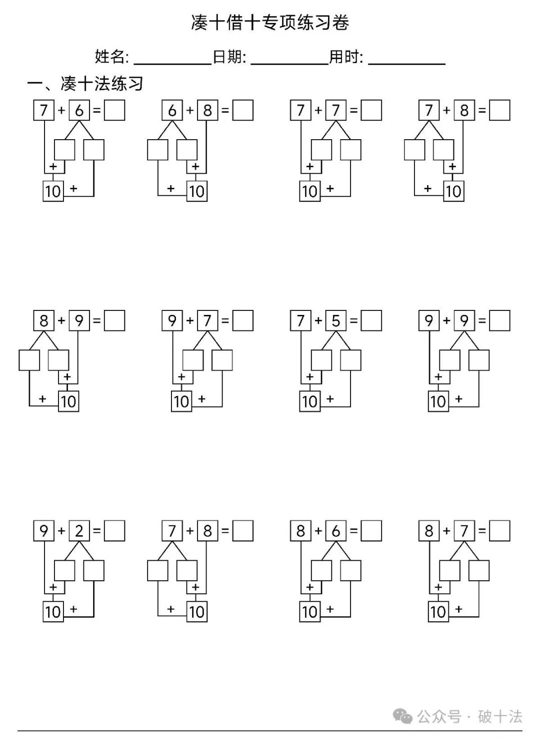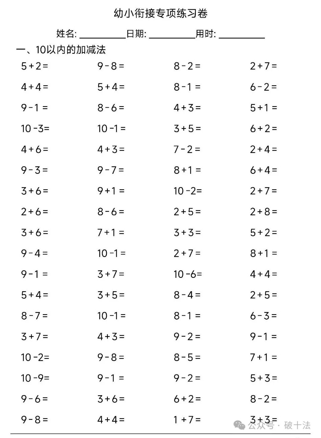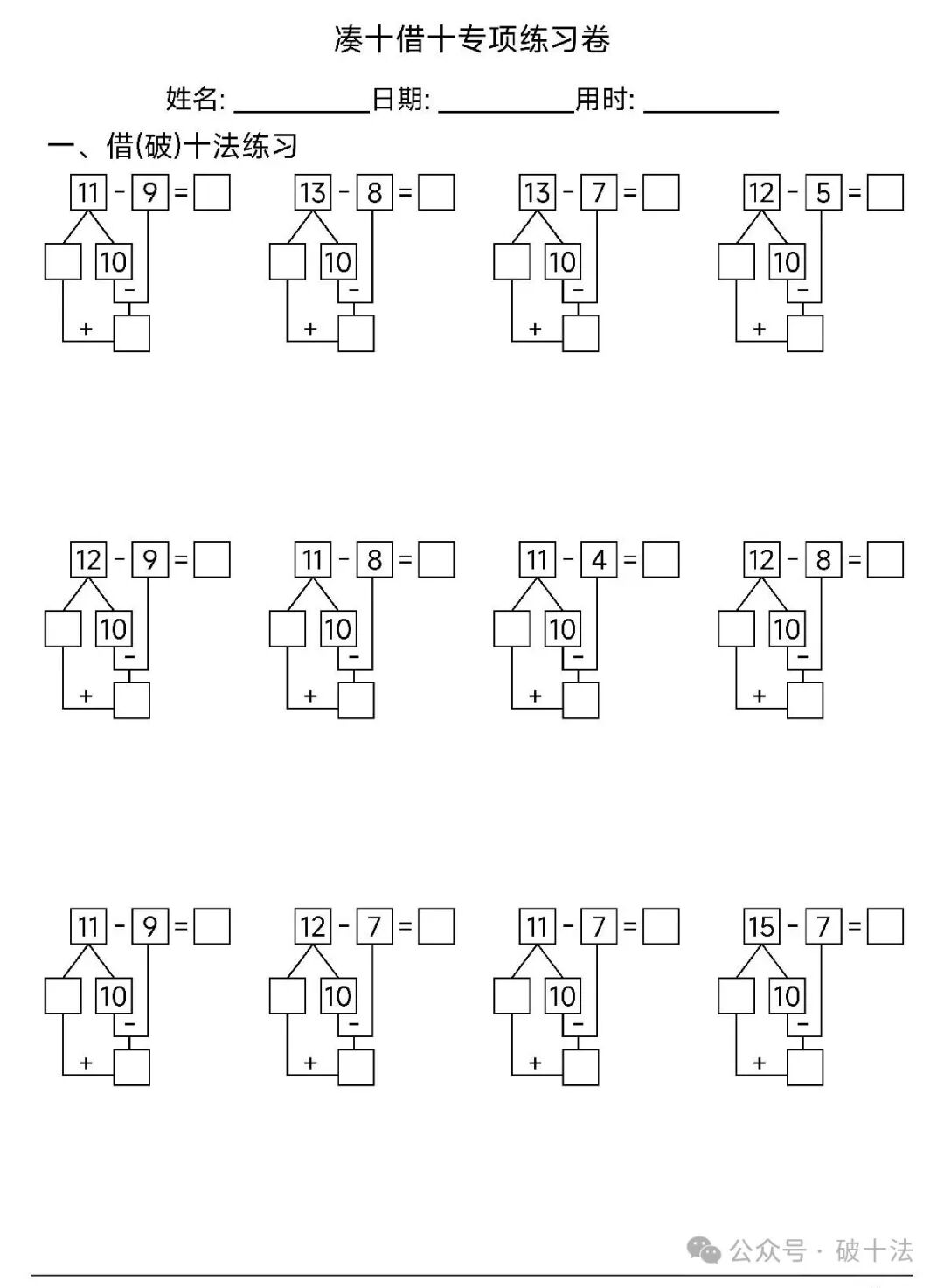这份练习卷可以帮助孩子巩固10以内加减法,掌握凑十借十的技巧,为20以内加减法的学习打下基础,并提升孩子的数学思维能力。![]()