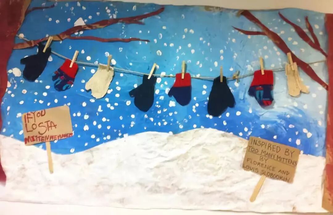 孩子们的作品挂到墙上