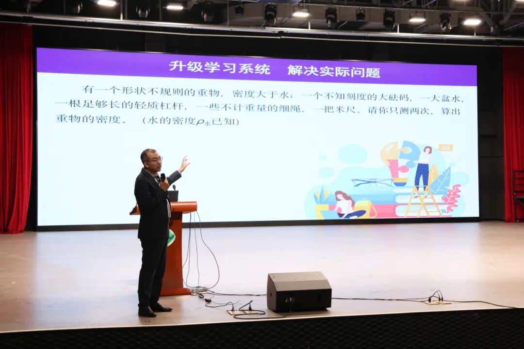宋老师给出了一道物理难题,邀请同学们现场解答。一石激起千层浪,同学们顿时热火朝天地讨论起来,也有人埋头苦思,一言不发,全身心沉浸其中。没过多久,便有同学大胆举手,向众人说出了自己的答案。
