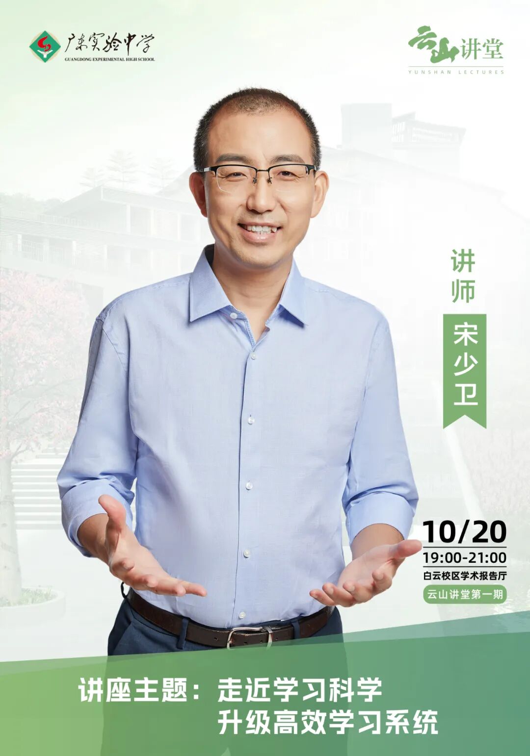 2024年10月22日晚,宋少卫老师莅临省实白云校区学术报告厅,以“走近学习科学,建构高效学习系统”为题,为我校学子带来精彩演说。