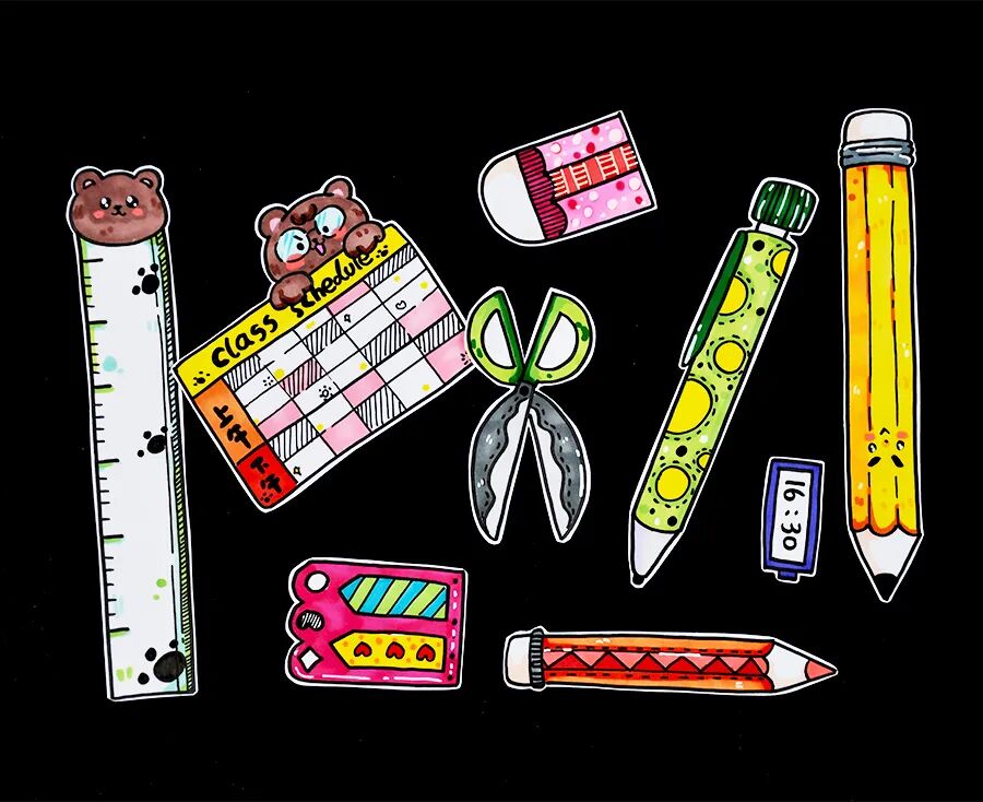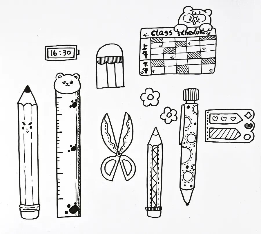 选择自己喜爱的文具画下来