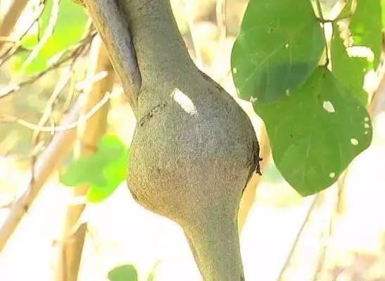 葛根虫寄生在葛藤里,葛虫靠吸取葛根的营养长大,随着葛虫的长大,葛藤的某一部分就会变大,就像长了一个“瘤”。如果你上山看到葛藤鼓起一个大包,那里面就是有“好货”啦!