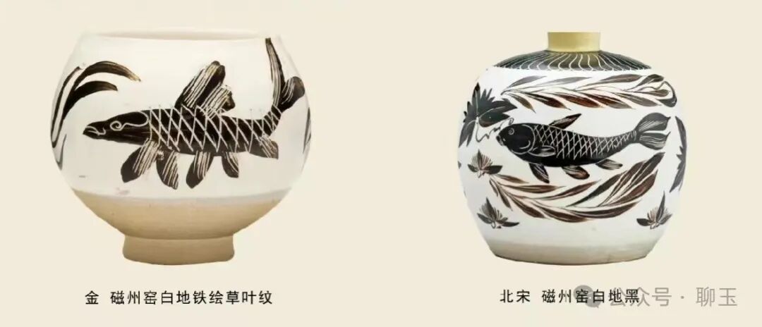 宋代鱼形纹饰的主要体现在陶瓷的装饰上,纹样线条柔美、流畅,写实性较强,把鱼真实的体态特征描绘的栩栩如生。