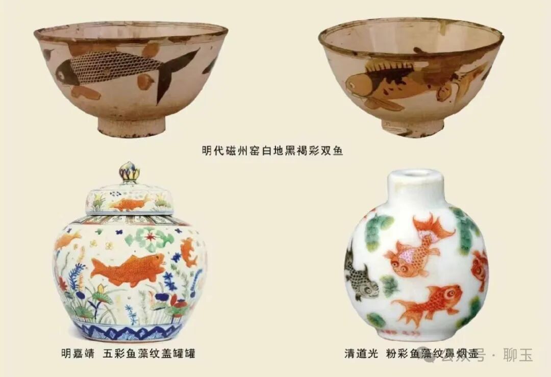 在明清时期,鱼图在人们的生活中就已经非常世俗化了,大到建筑装饰,小到日常的碗碟都有鱼的吉祥形象,可以说是无处不在,成为了人们生活中的一部分。