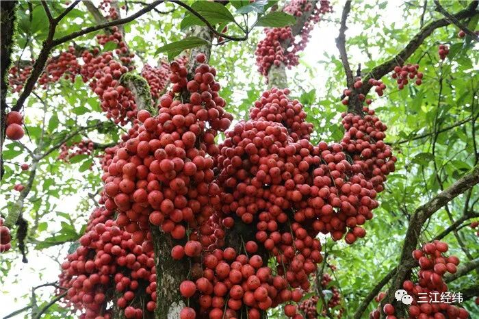 每年七、八月份的时候,江城县特有的三丫果树上缀满了一串串红艳艳的果实。