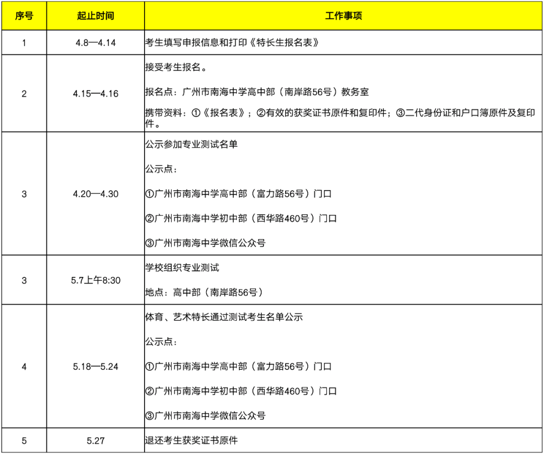 经学校、区教育局审核后,确定参加专业测试人员名单,名单将于4月20日—4月30日在广州市南海中学微信公众号及初高中部公示栏公示。