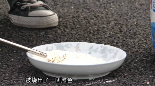 当扬起的面粉遇到火焰,火苗瞬间窜起。实验人员又把面粉换成淀粉和咖啡粉,结果都一样。