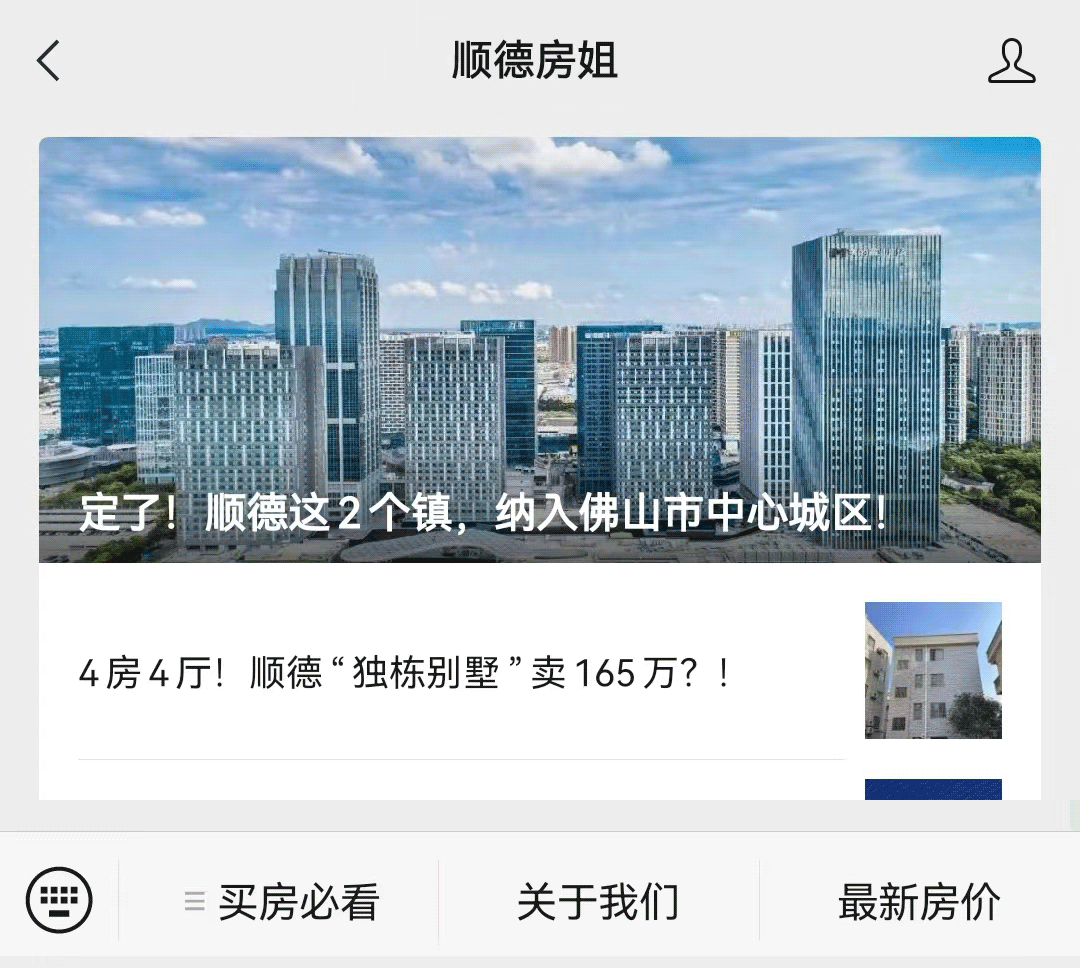 第一步:点击下面“顺德房姐”微信公众号卡片,然后点击页面右上角的“关注”按钮,关注“顺德房姐”公众号。