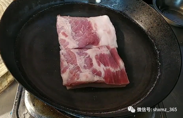 1.首先把五花肉放在烧热的锅底烙一下,这样做的目的是去除皮腥味,还有残留的猪毛,把猪皮烙成金黄色,用刀刮一下,然后用温水清洗干净。清洗后把五花肉加黄酒,葱和姜片煮一下,这样是为了更好的去除血水,煮至8成熟就可以了。用筷子插入,没有血水溢出就可以捞出来,用凉水冲洗一下,晾凉。