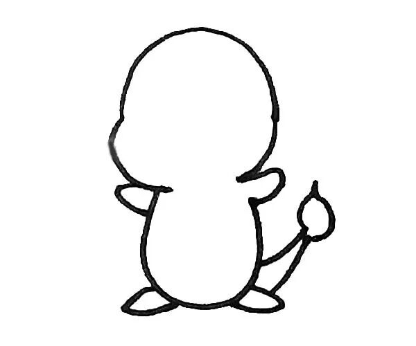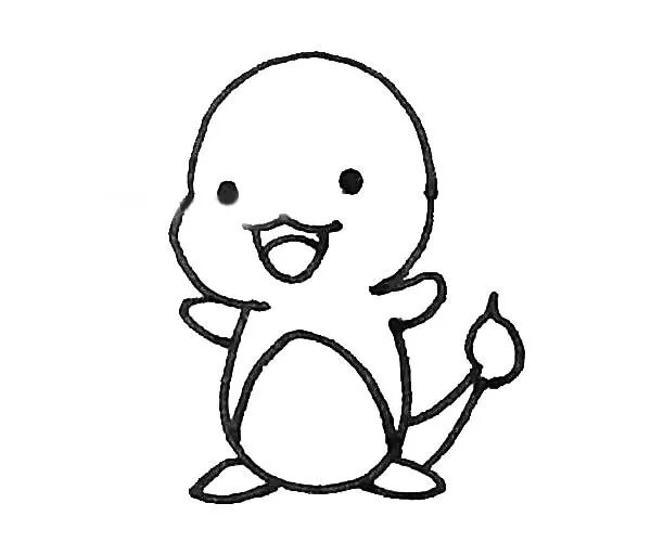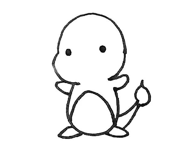 第五步:用半个椭圆形画出小火龙的肚皮,以及在脸上点上两个小眼睛。