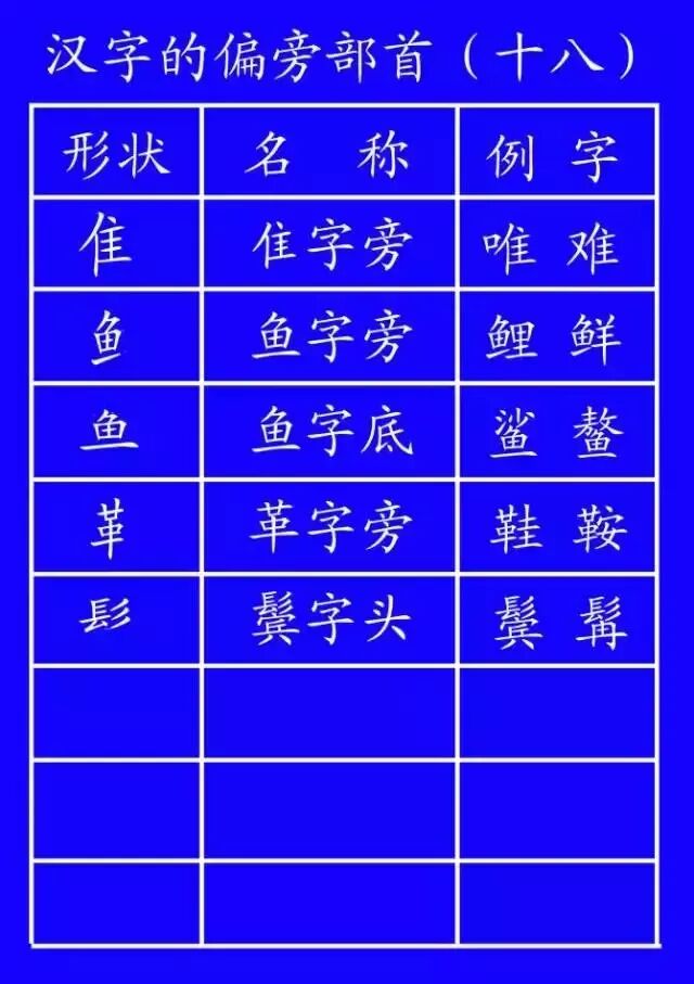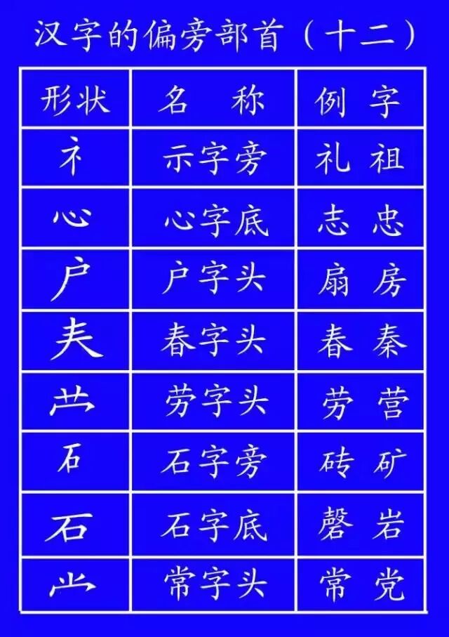 土(培场)、王(玩球)、止(歧武)、血(衅衄)、耳(取、联)、子(孙、孩)、马(驰、驶)、鸟(鸵)。