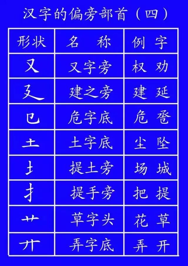 后撇:刀、力、乃、万(笔顺:横、横折钩、撇)、方(笔顺:点、横、横折钩、撇)。